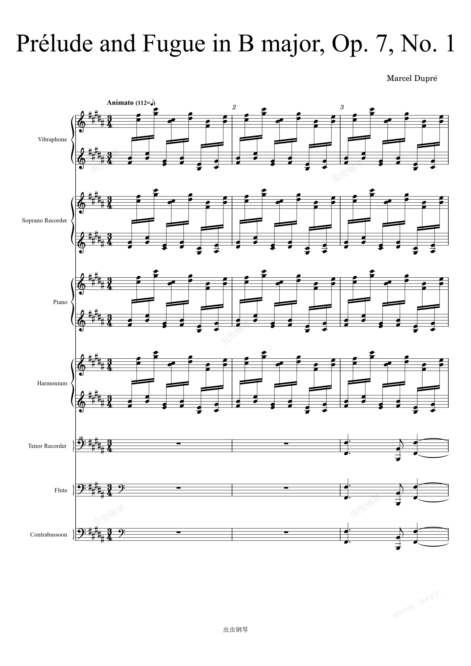 钢琴谱:Marcel Dupré: Prélude and Fugue in B major, Op. 7, No. 1