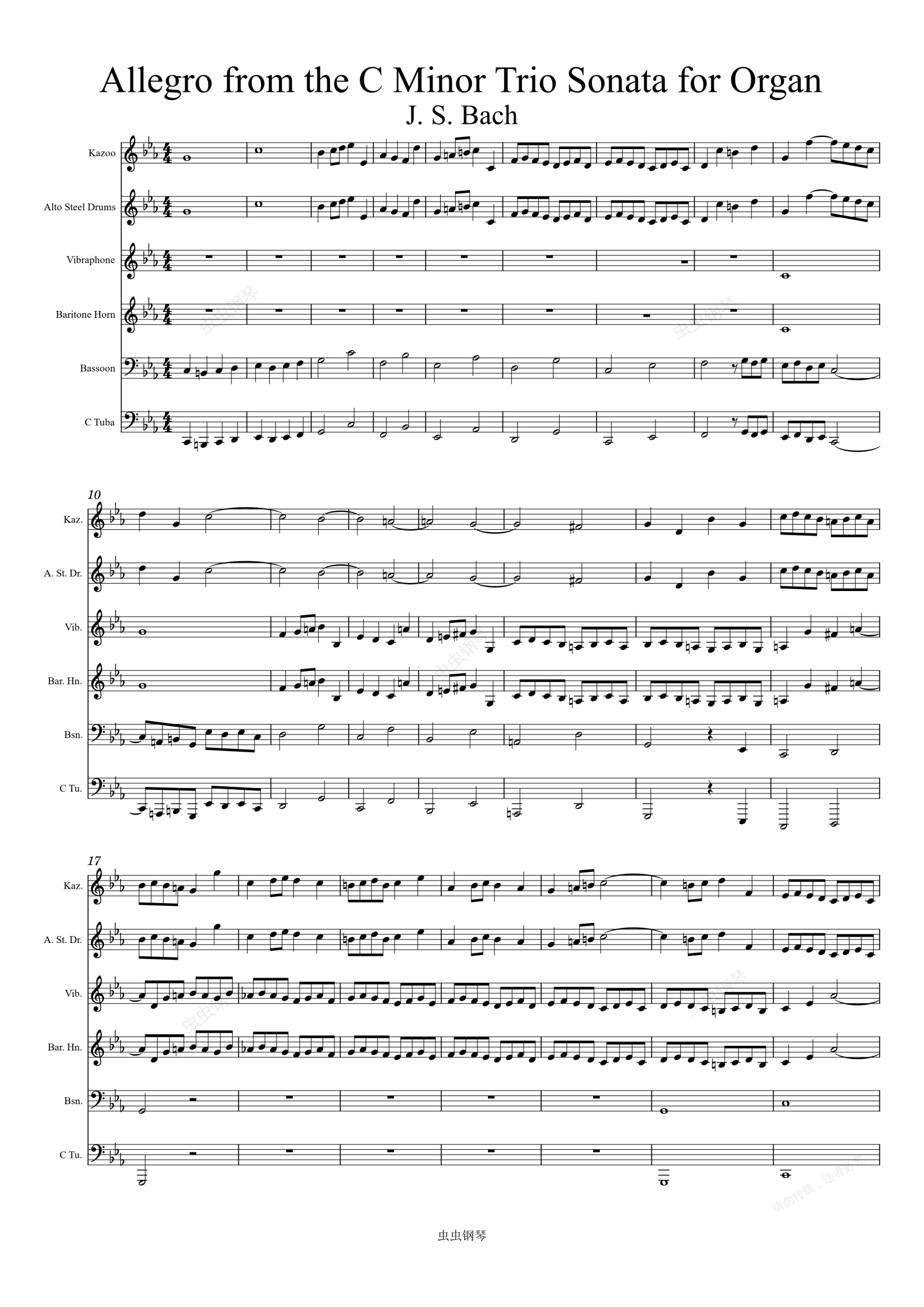钢琴谱:Bach: Allegro from the C Minor Trio Sonata for Organ, BWV 526
