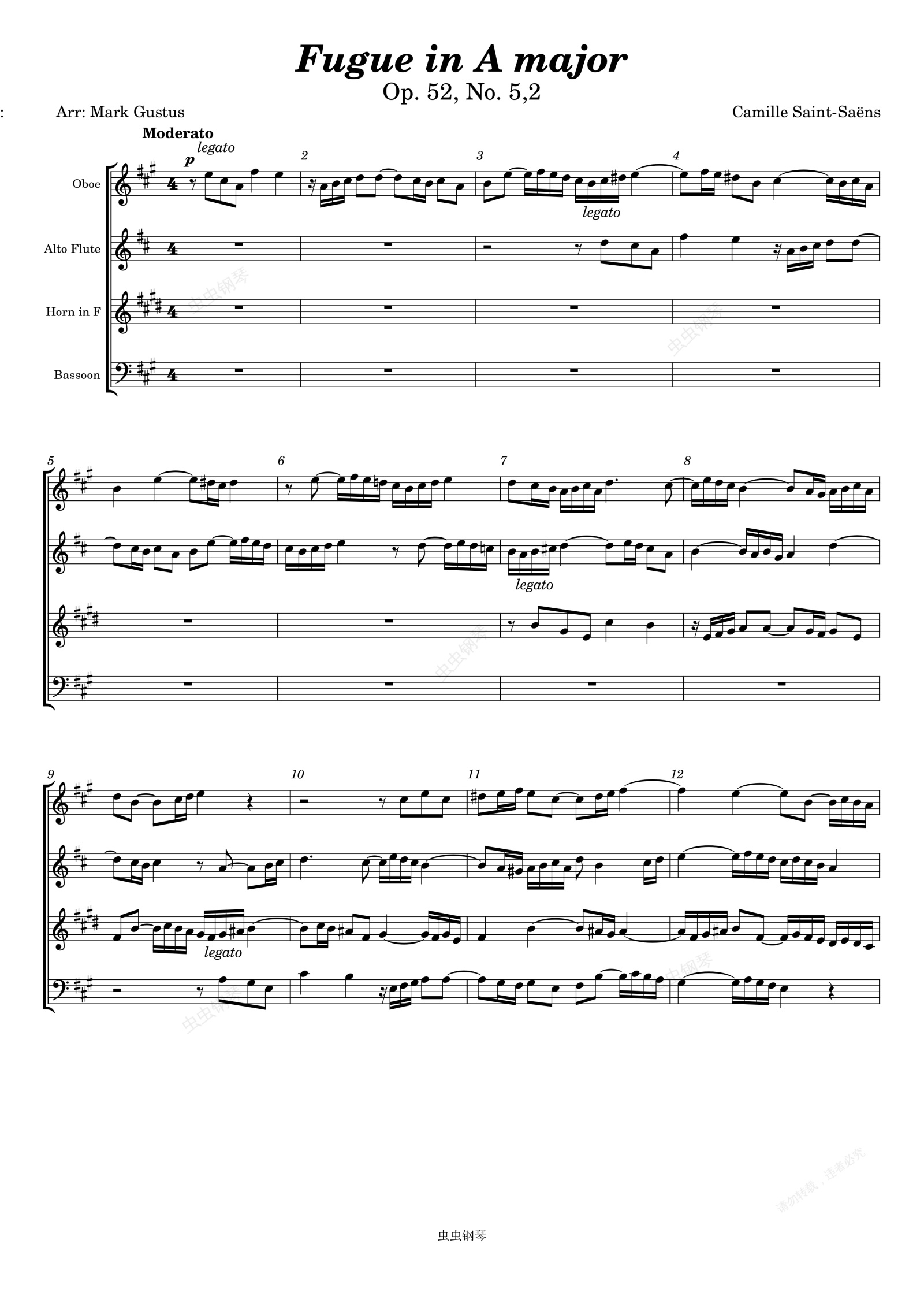 钢琴谱:Saint Saëns: Fugue in A major, Op. 52, No 5,2