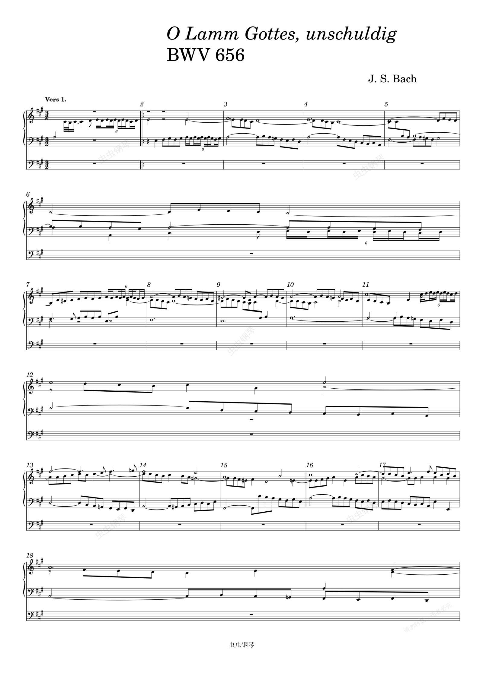 钢琴谱:Bach: O Lamm Gottes, unschuldig, BWV 656