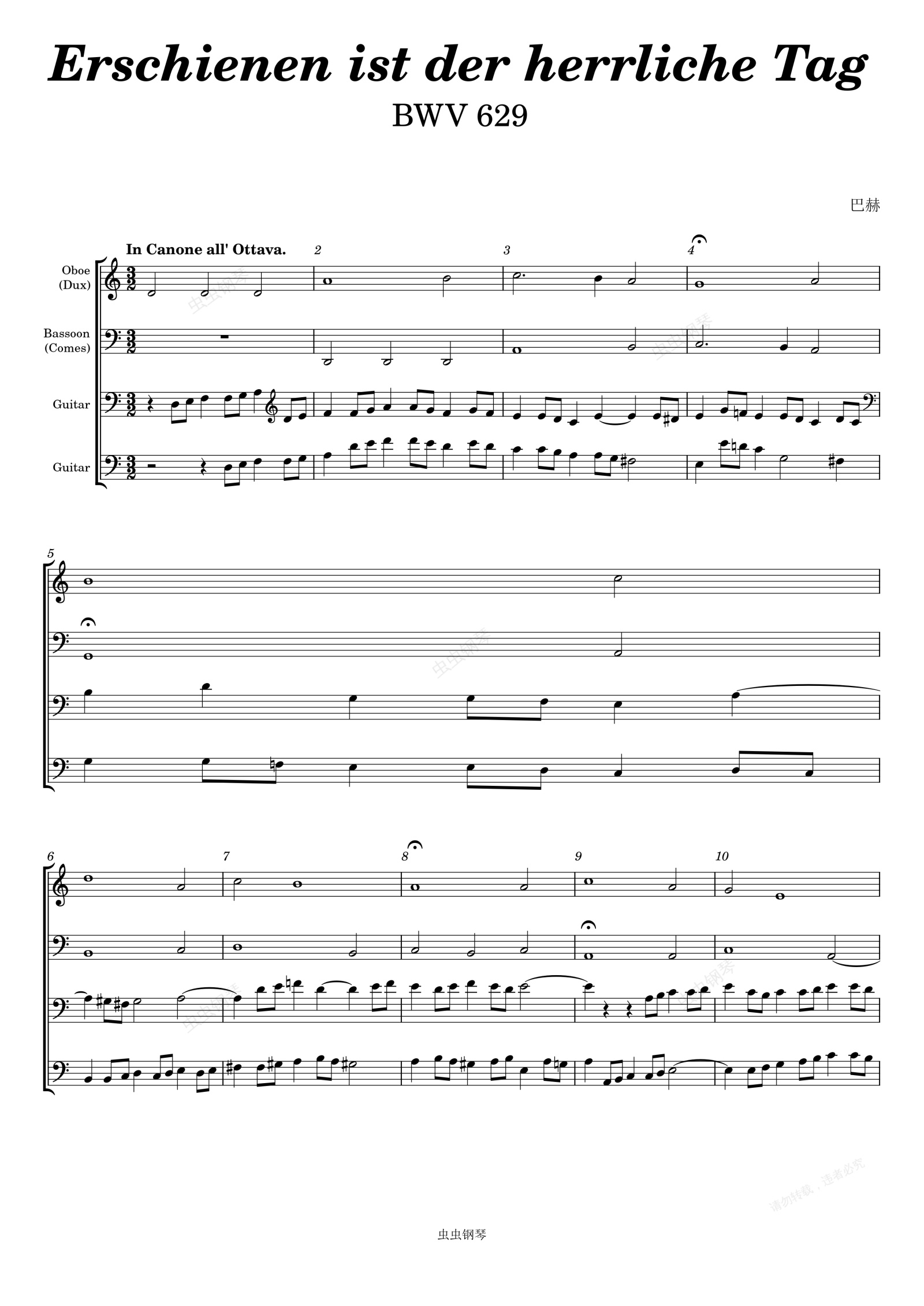 钢琴谱:Bach: Erschienen ist der herrliche Tag, BWV 629