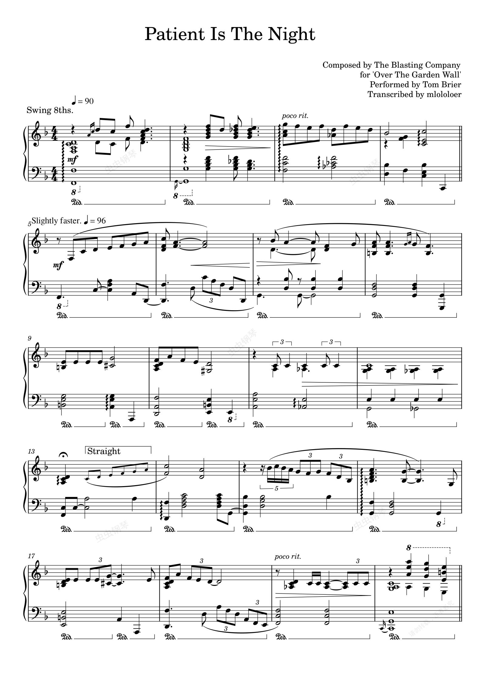 钢琴谱:Patient Is The Night as played by Tom Brier
