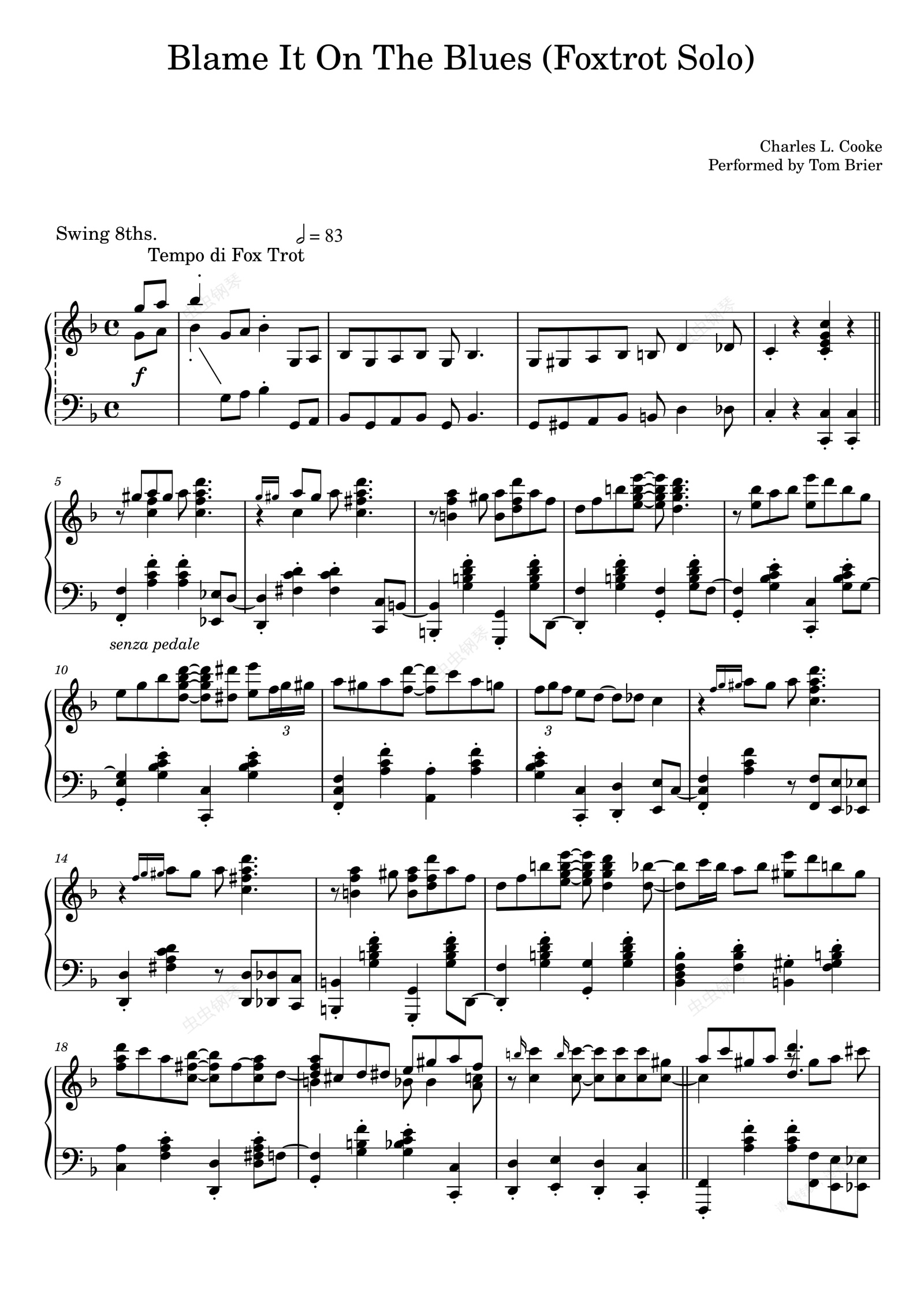 钢琴谱:Blame It On The Blues (Foxtrot Solo by Tom Brier)