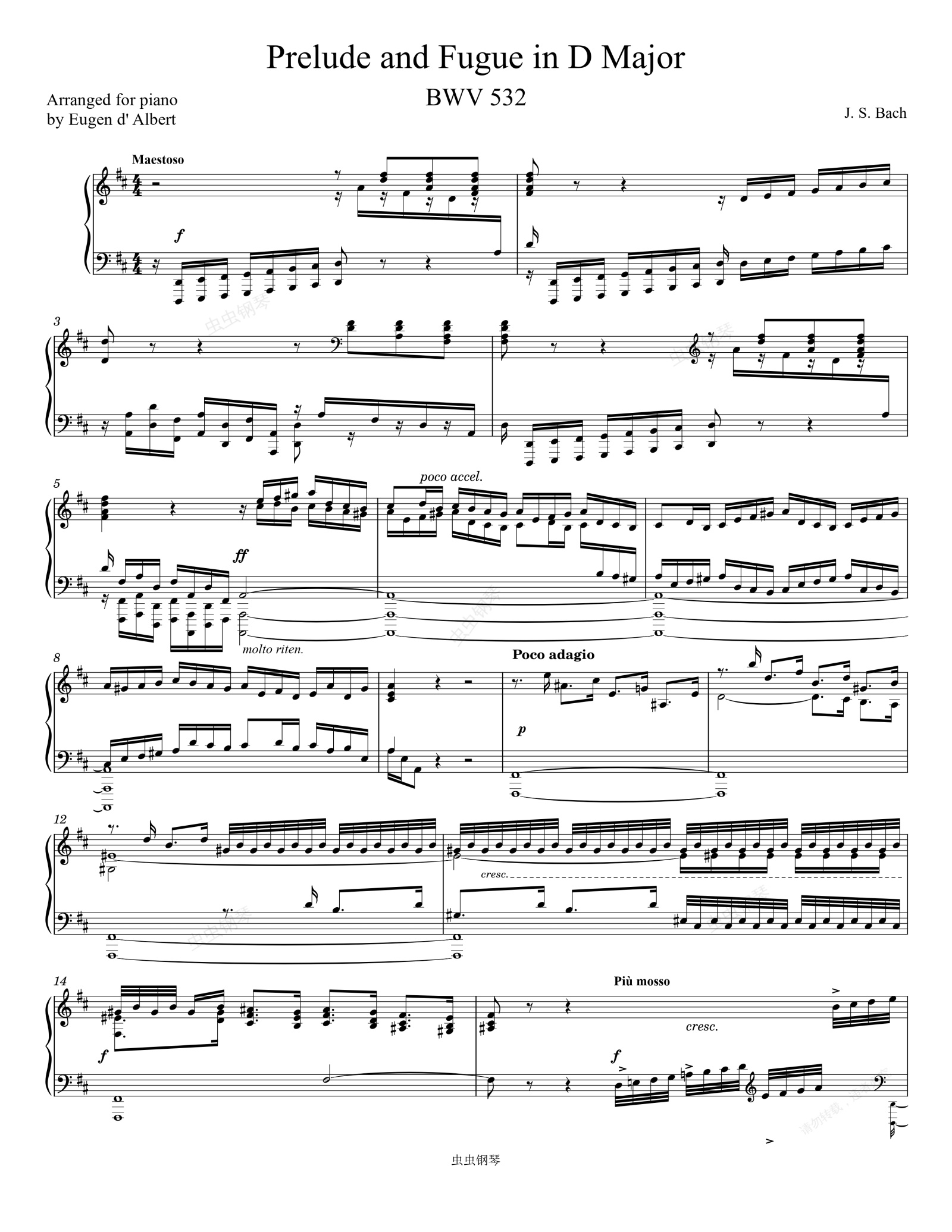 钢琴谱:Bach Prelude and Fugue in D-Major, BWV 532 (Piano solo)