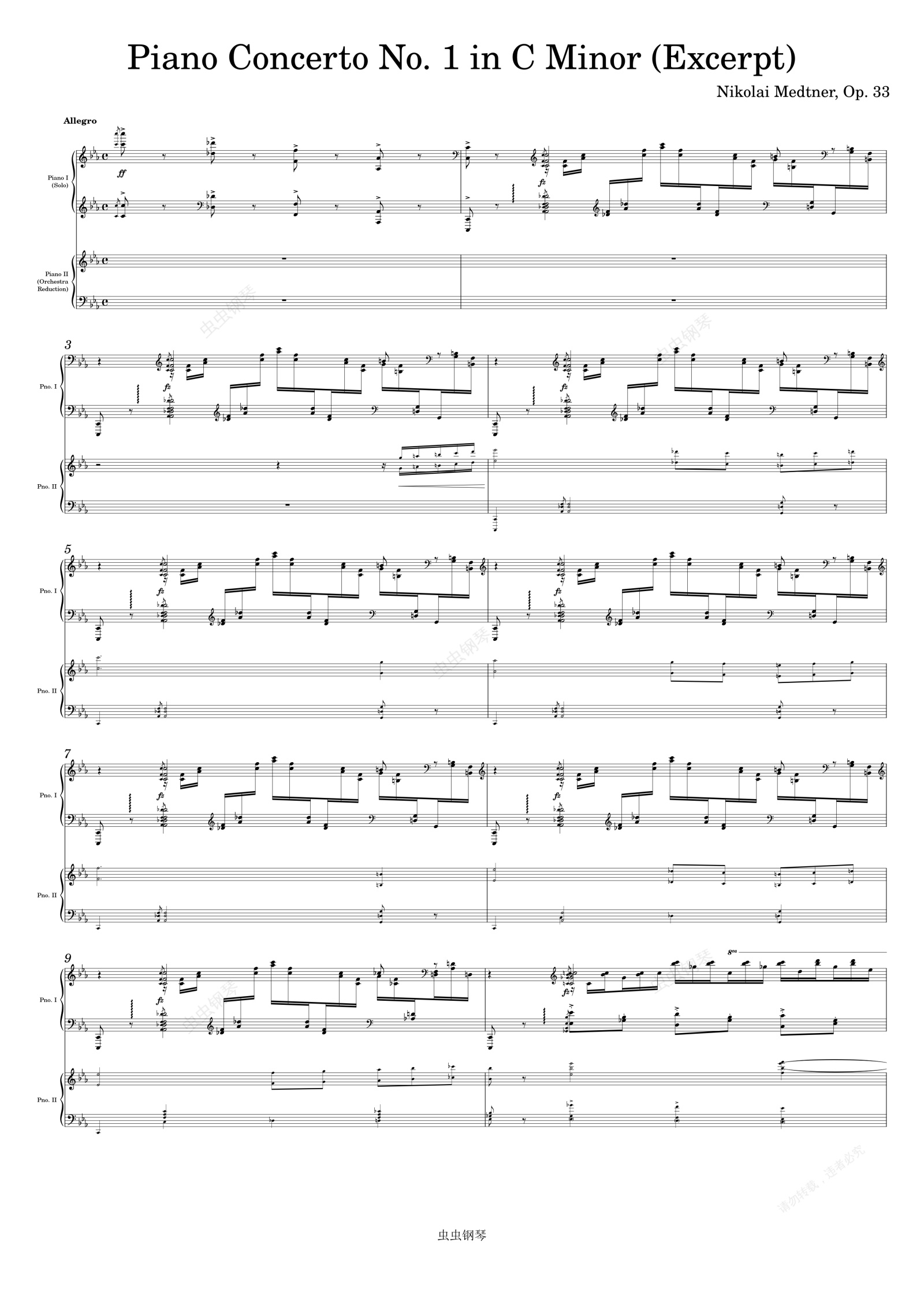 钢琴谱:Medtner Piano Concerto No. 1 (Excerpt) arr. for 2 pianos