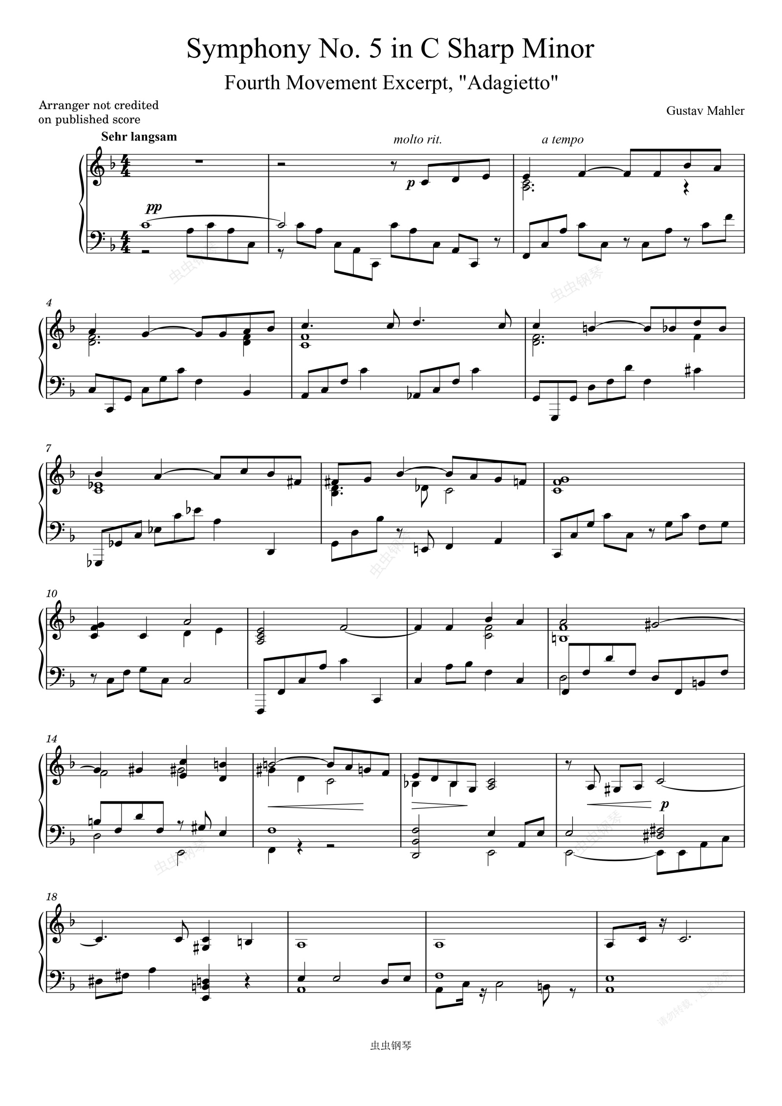 钢琴谱:Mahler Symphony No. 5 (4th Movement Excerpt) Piano Solo