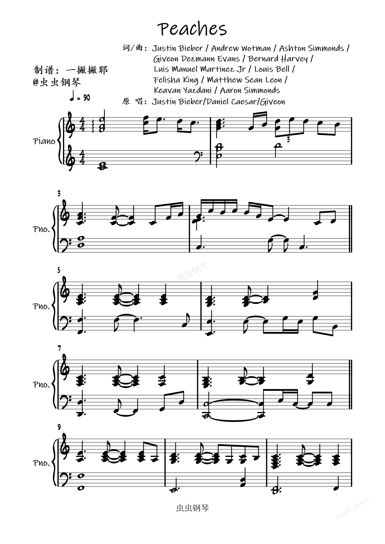 钢琴谱:Peaches【完美伴奏】Justin Bieber 贾斯汀·比伯「一撇撇耶」