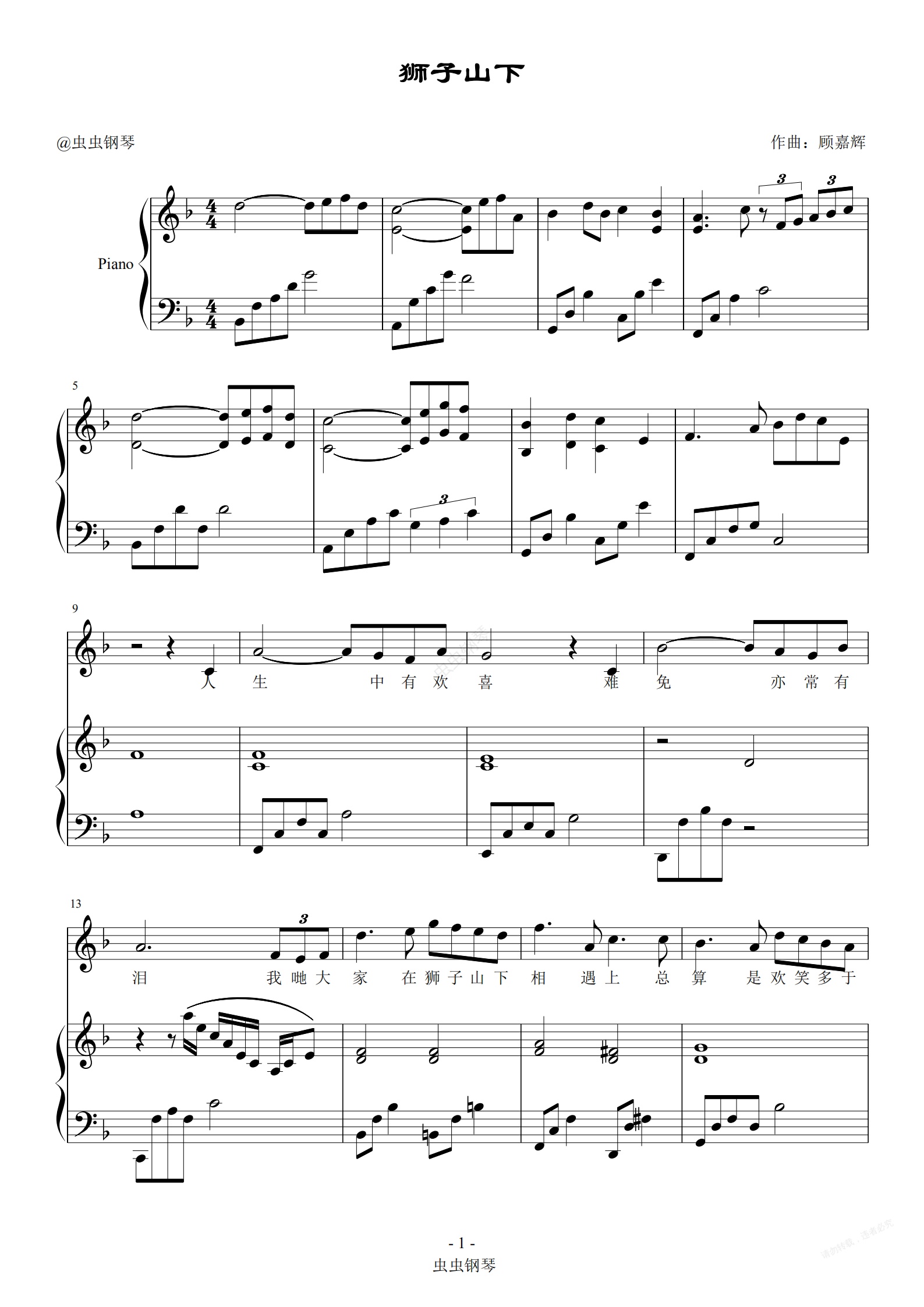 钢琴谱:狮子山下 钢琴弹唱谱