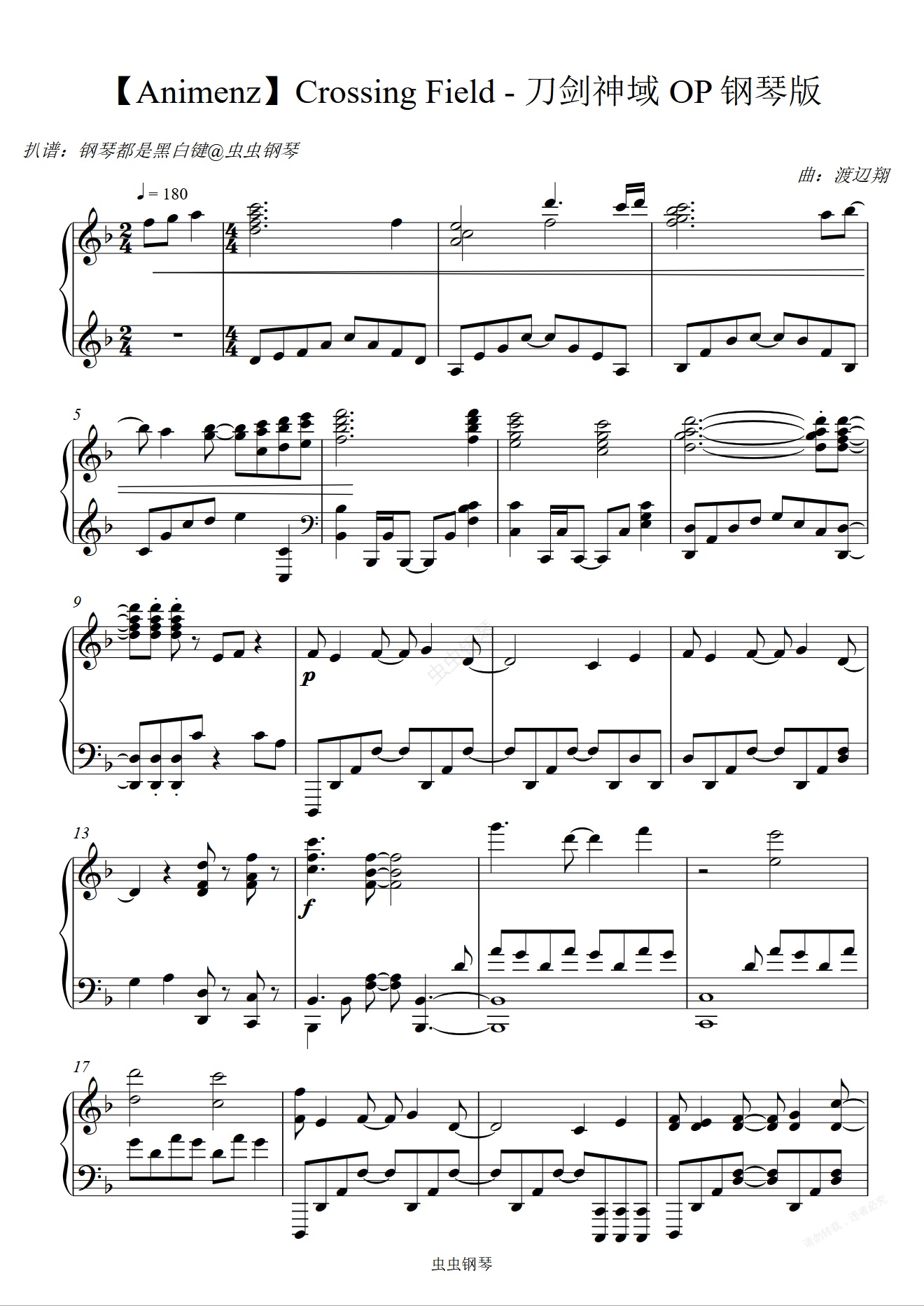 【Animenz扒谱】Crossing Field - 刀剑神域 OP 钢琴版