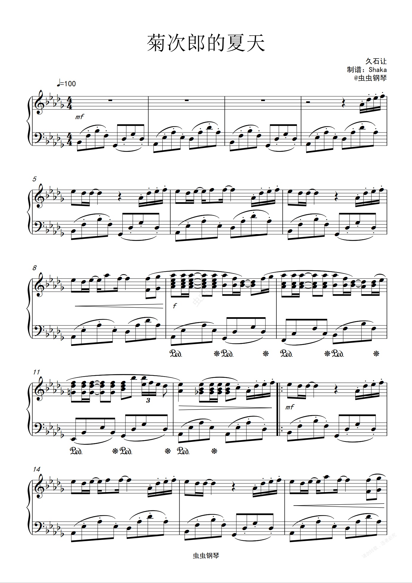 钢琴谱:菊次郎的夏天(Summer)升C调 完美转调版