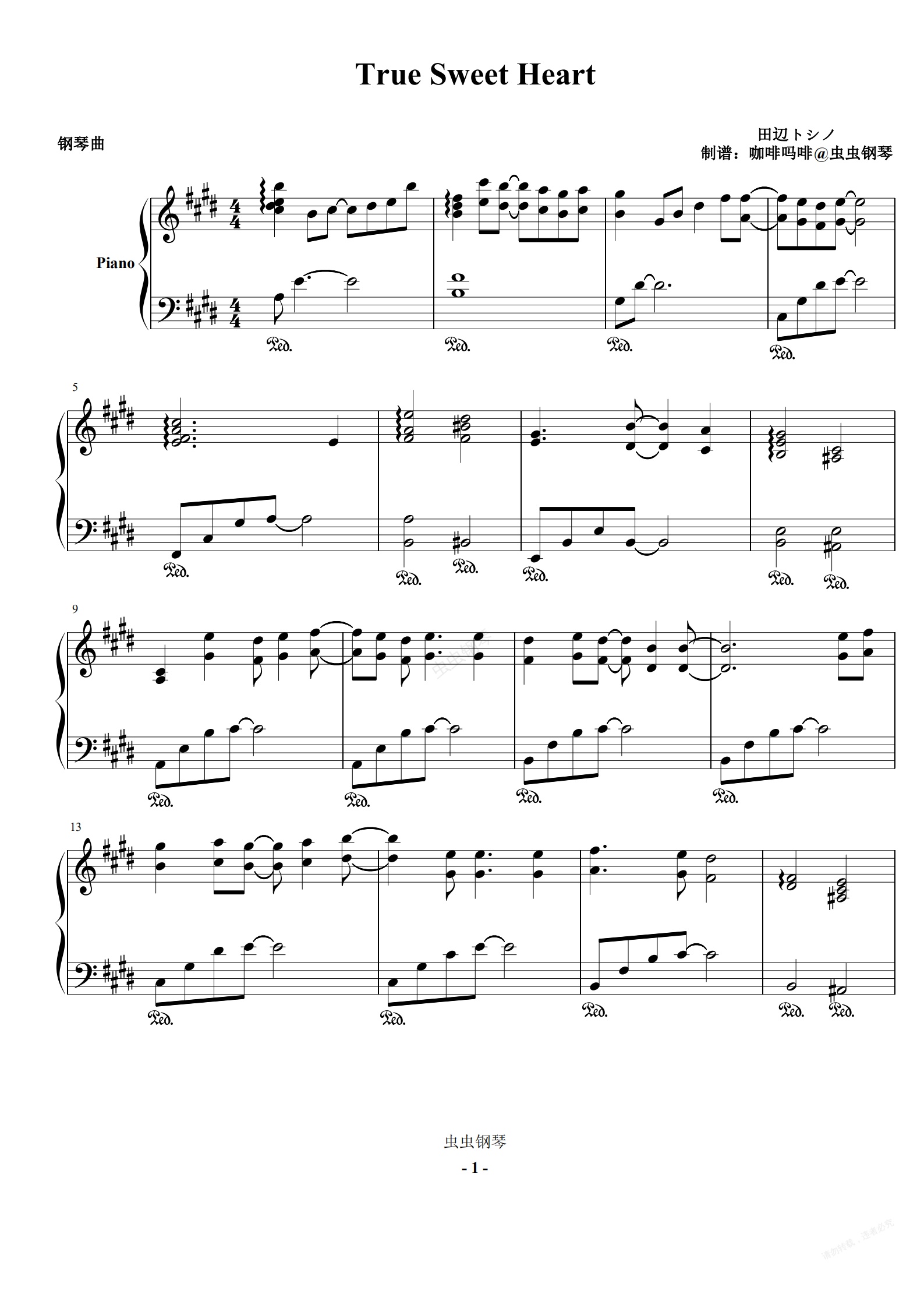 钢琴谱:True Sweet Heart-田辺トシノ钢琴谱