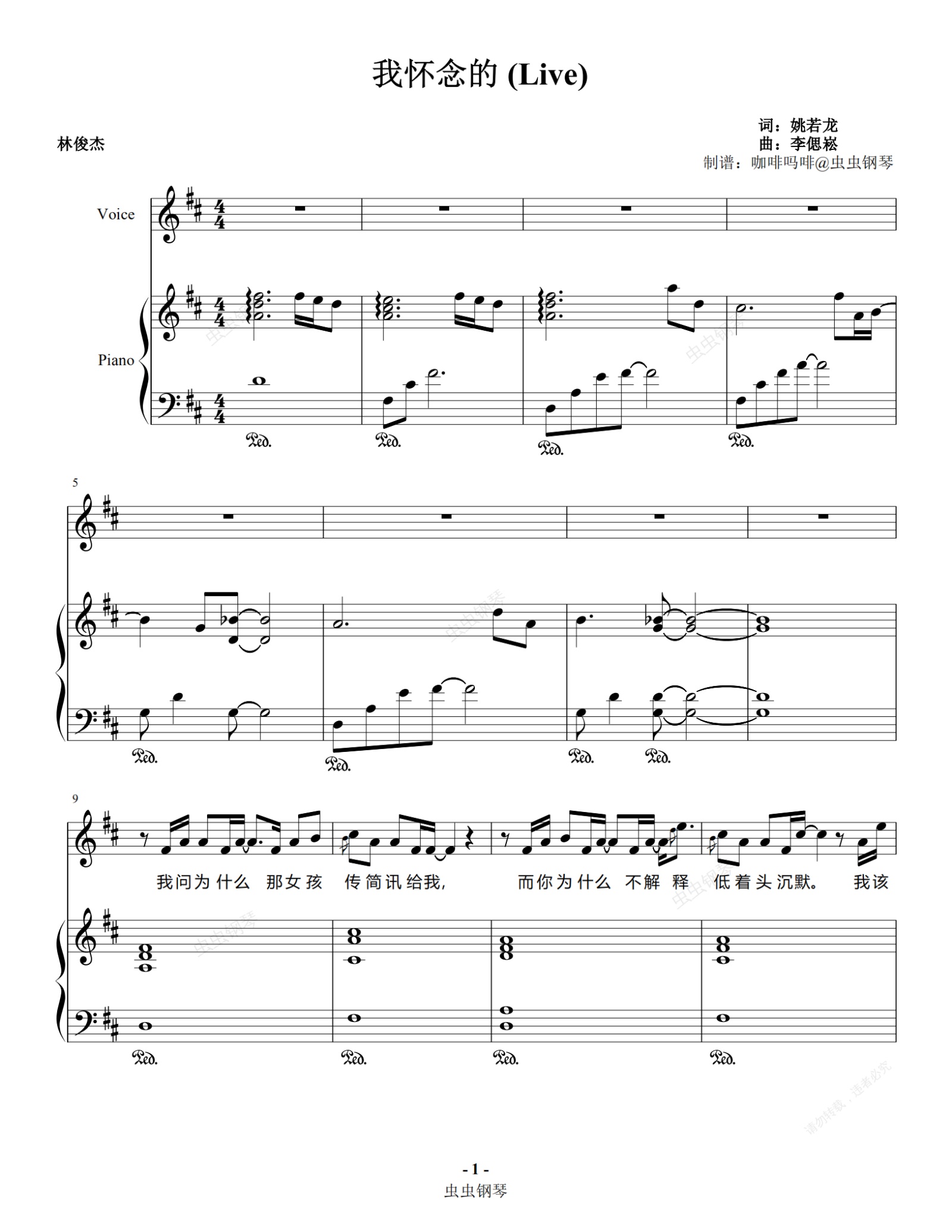 钢琴谱:我怀念的 (Live)-林俊杰 钢琴伴奏谱
