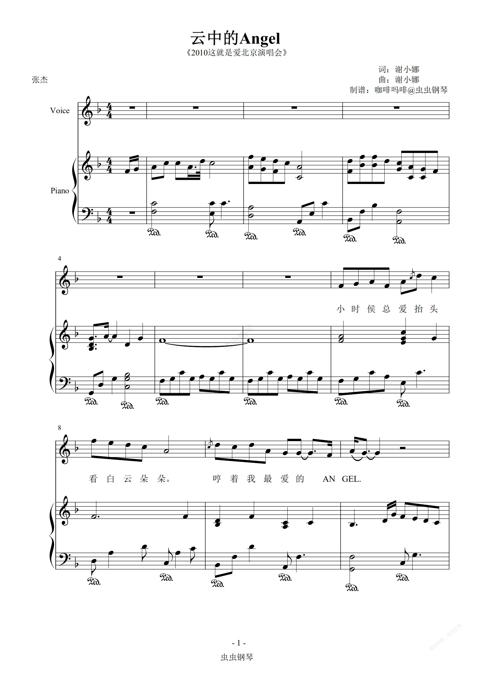 钢琴谱:云中的Angel - 张杰 钢琴伴奏谱