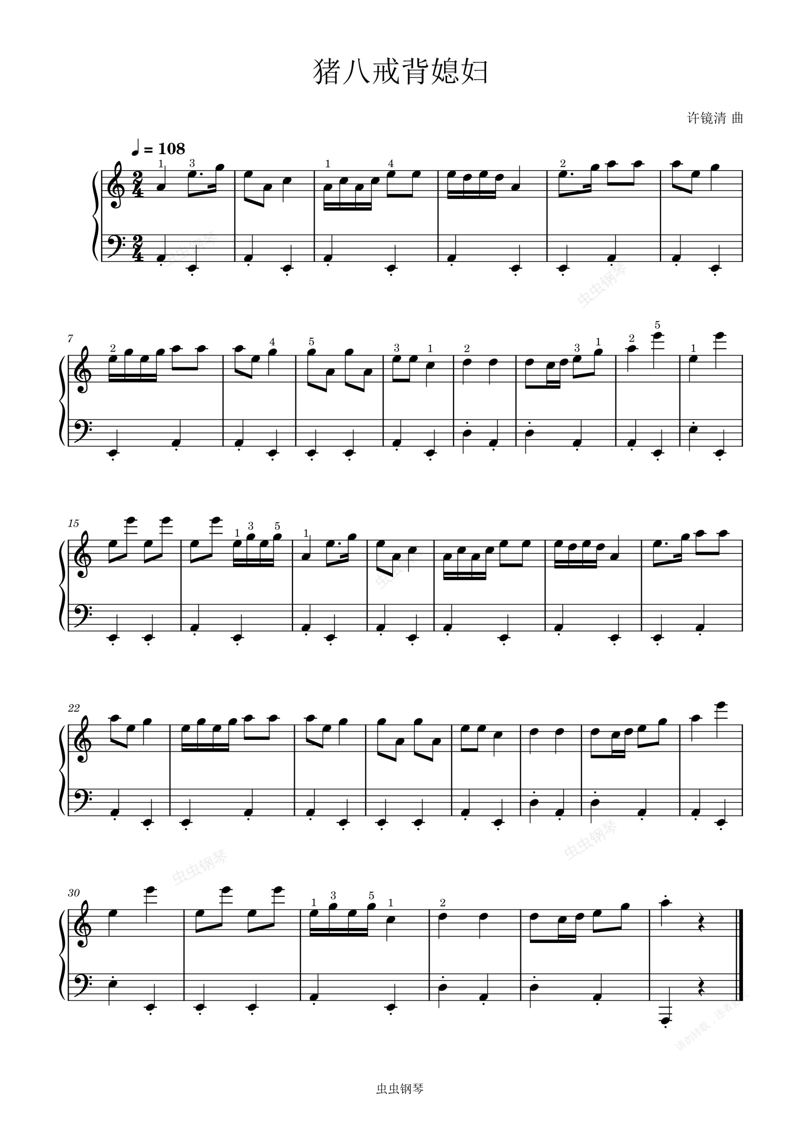 钢琴谱:猪八戒背媳妇