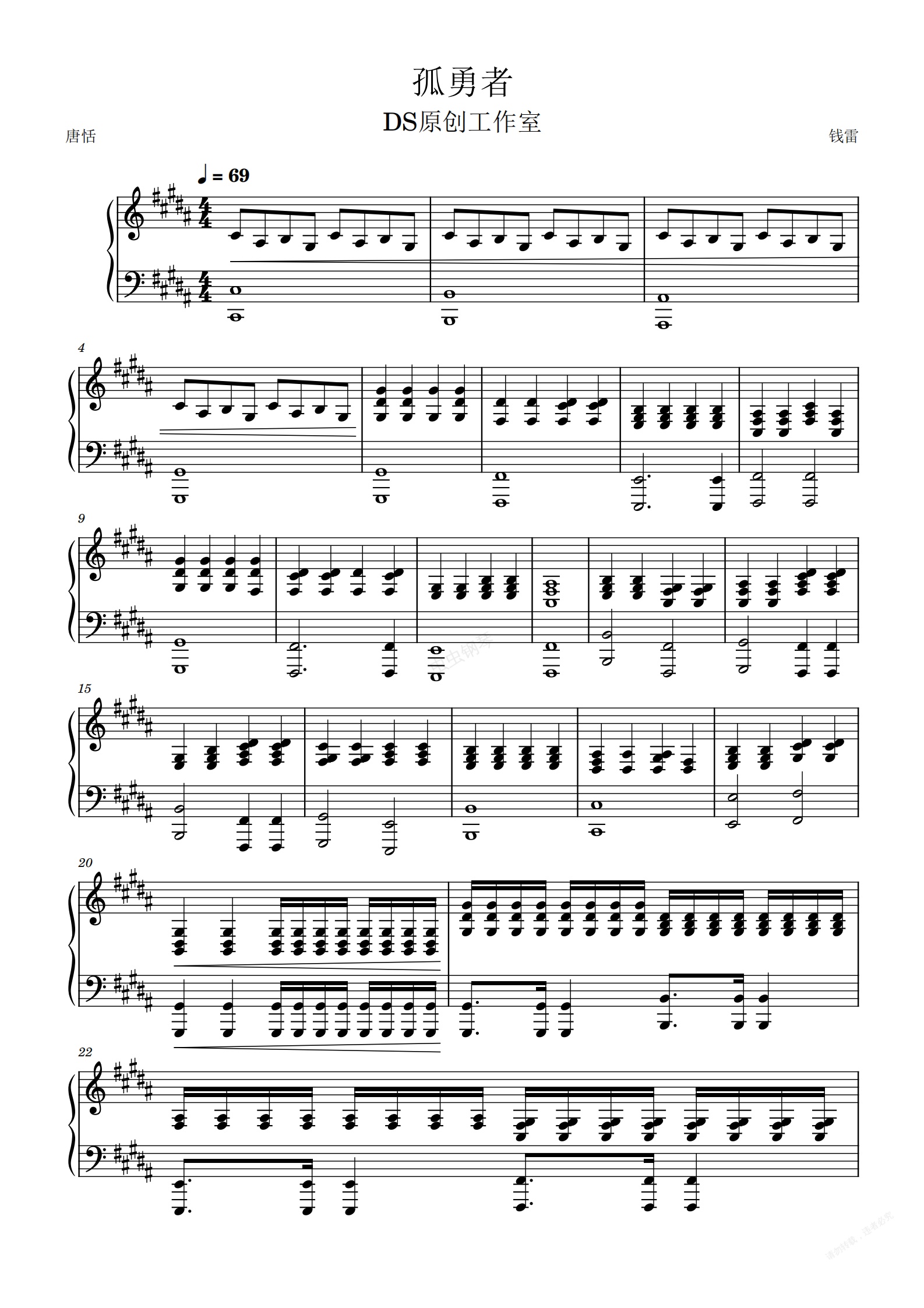 钢琴谱:孤勇者-陈奕迅 极简弹唱谱