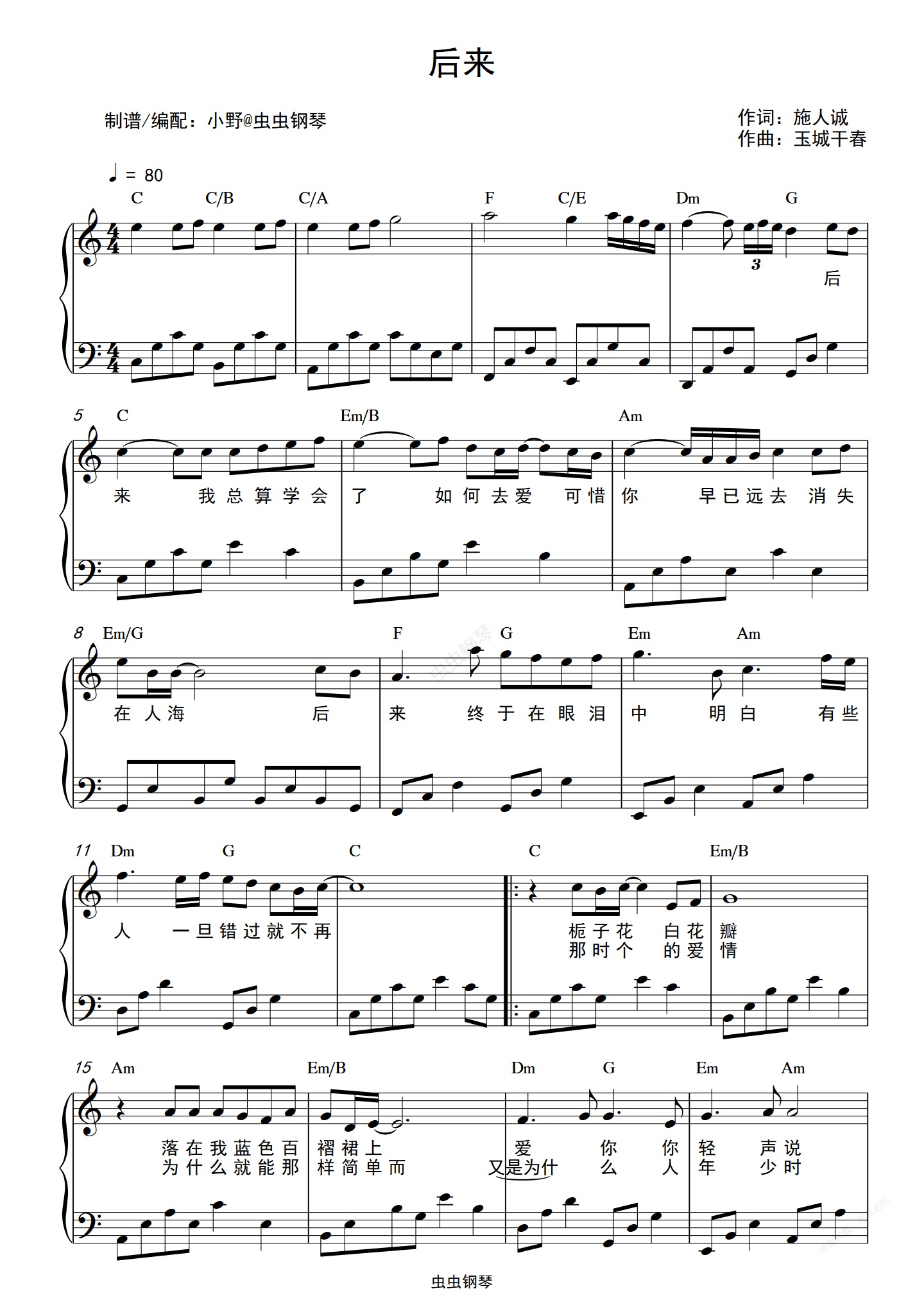 钢琴谱:后来