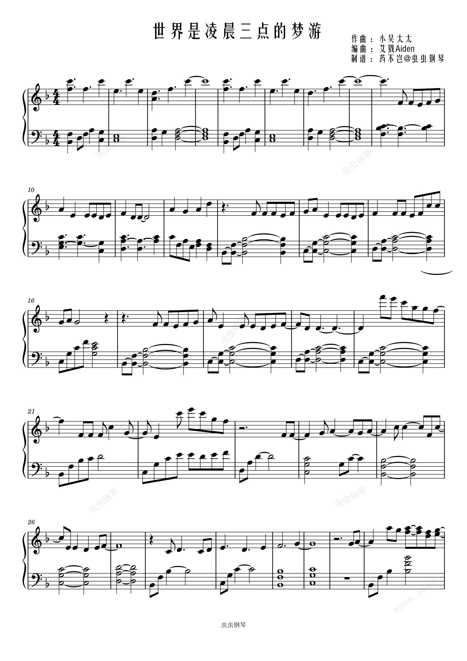 钢琴谱:世界是凌晨三点的梦游 - 伦桑(广播剧《难哄》主题曲)