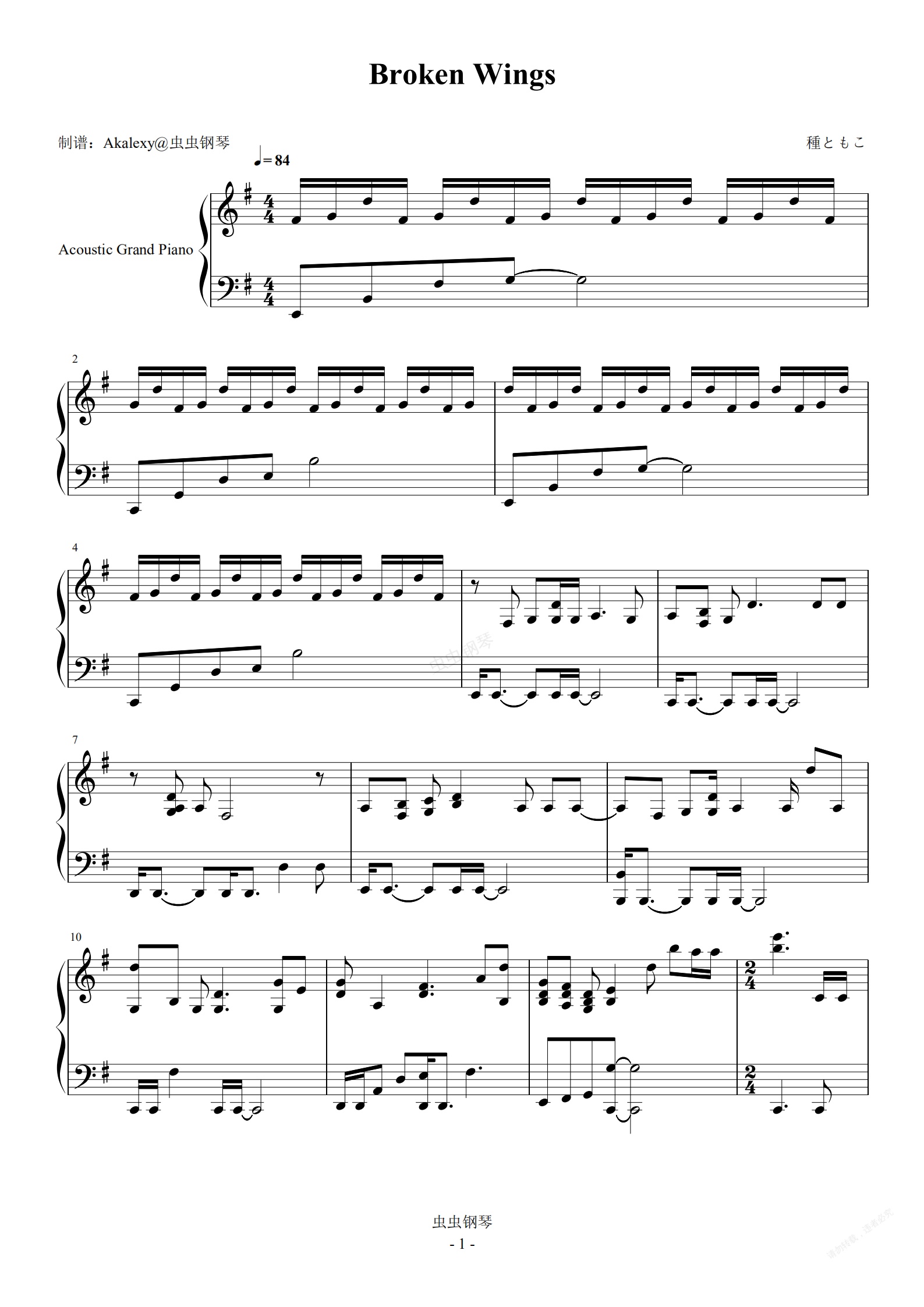 钢琴谱:《Broken Wings》圣魔之血ed含人声版