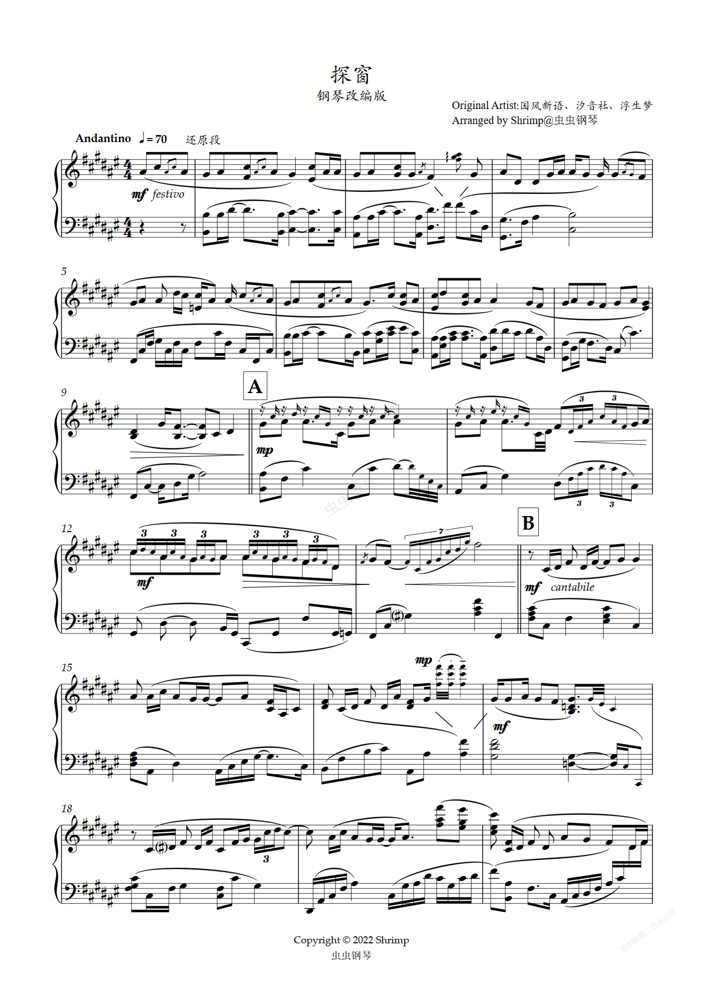 钢琴谱:《探窗》高燃改编版