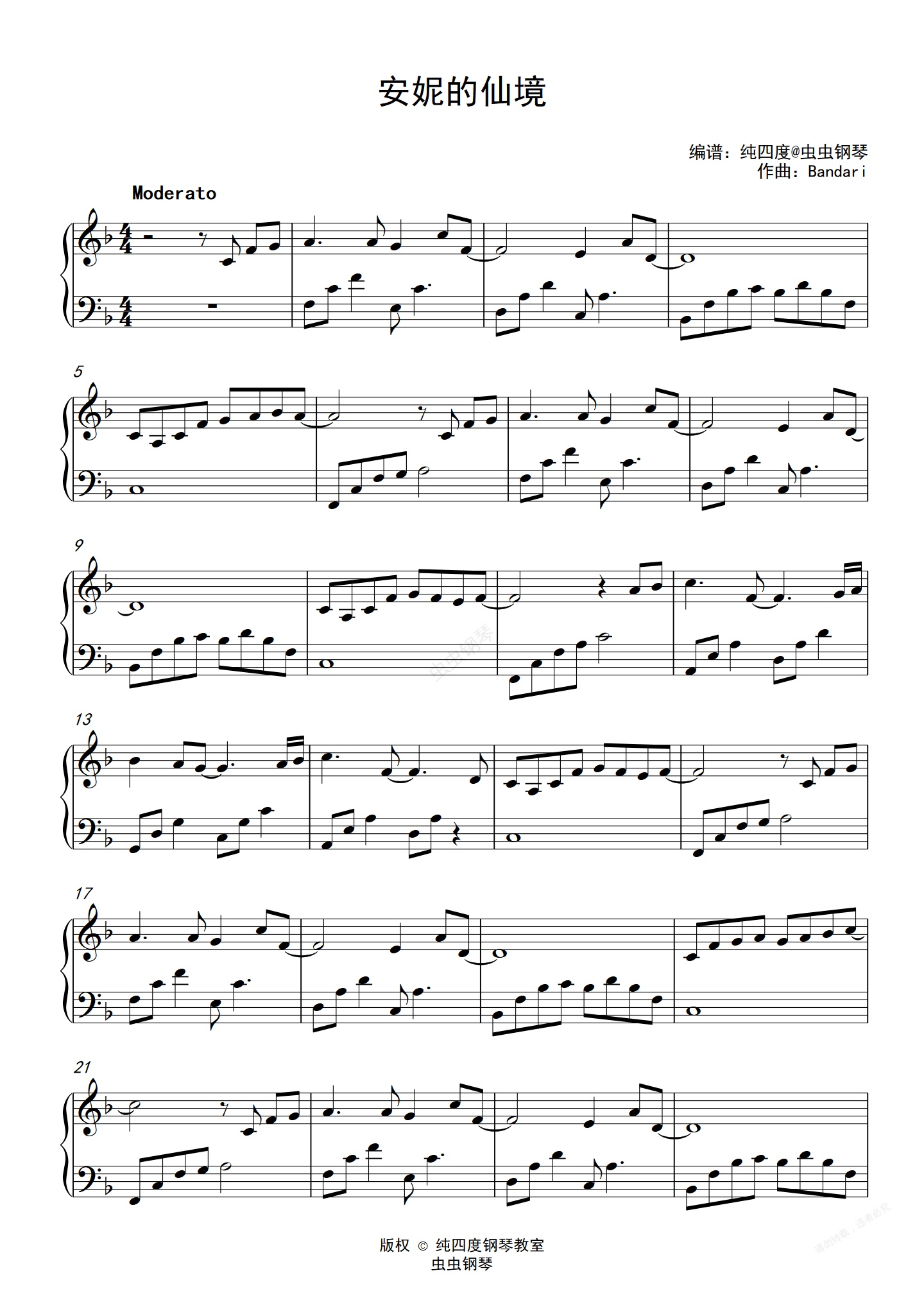钢琴谱:班得瑞-安妮的仙境(完美C调版)
