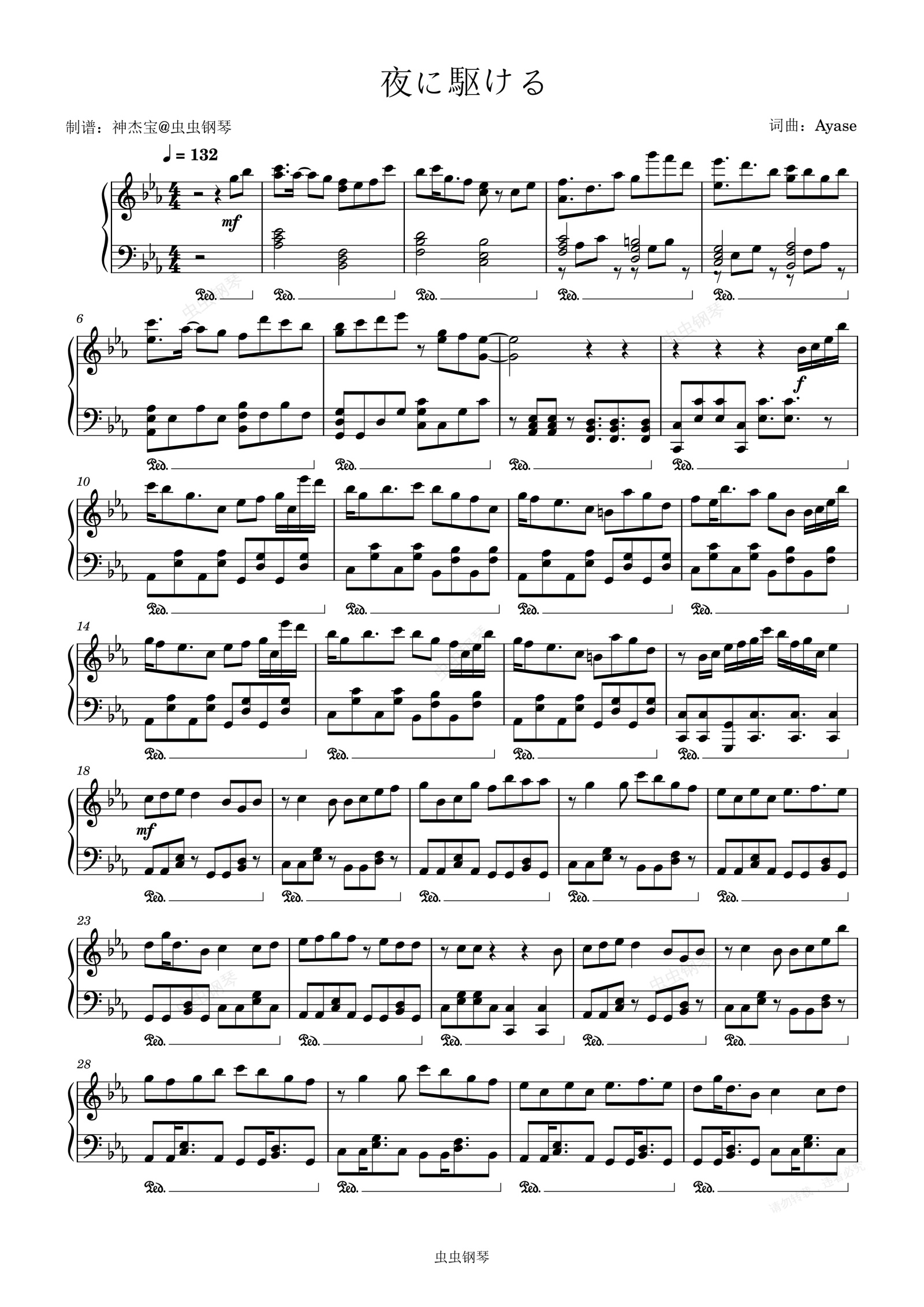 钢琴谱:向夜晚奔去(夜に駆ける)