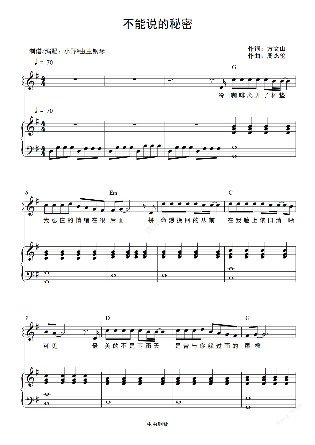 钢琴谱:不能说的秘密(和弦弹唱版)