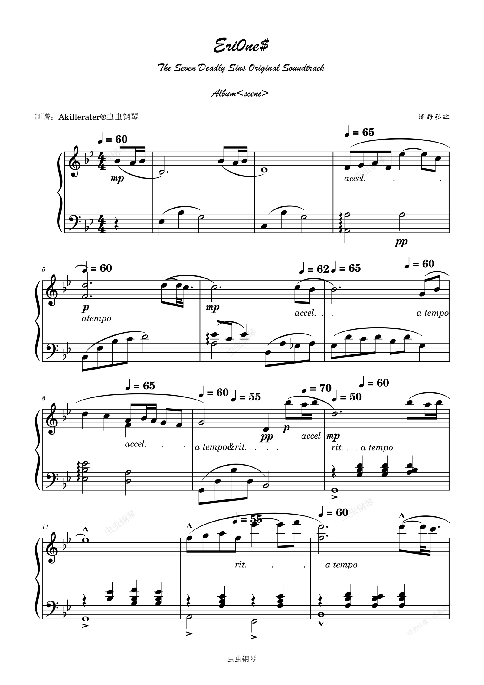 钢琴谱:Eri0ne$(《七大罪》泽野弘之scene专辑钢琴版》
