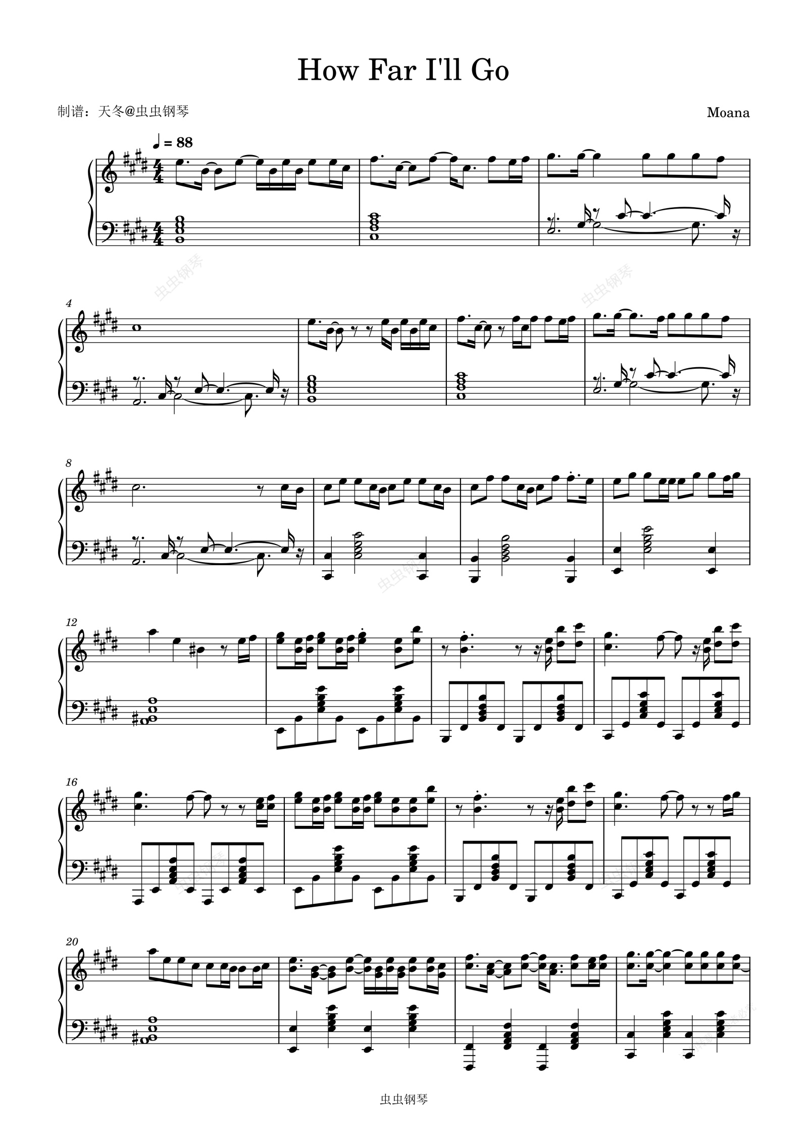 钢琴谱:How Far I'll Go《海洋奇缘》电影主题曲