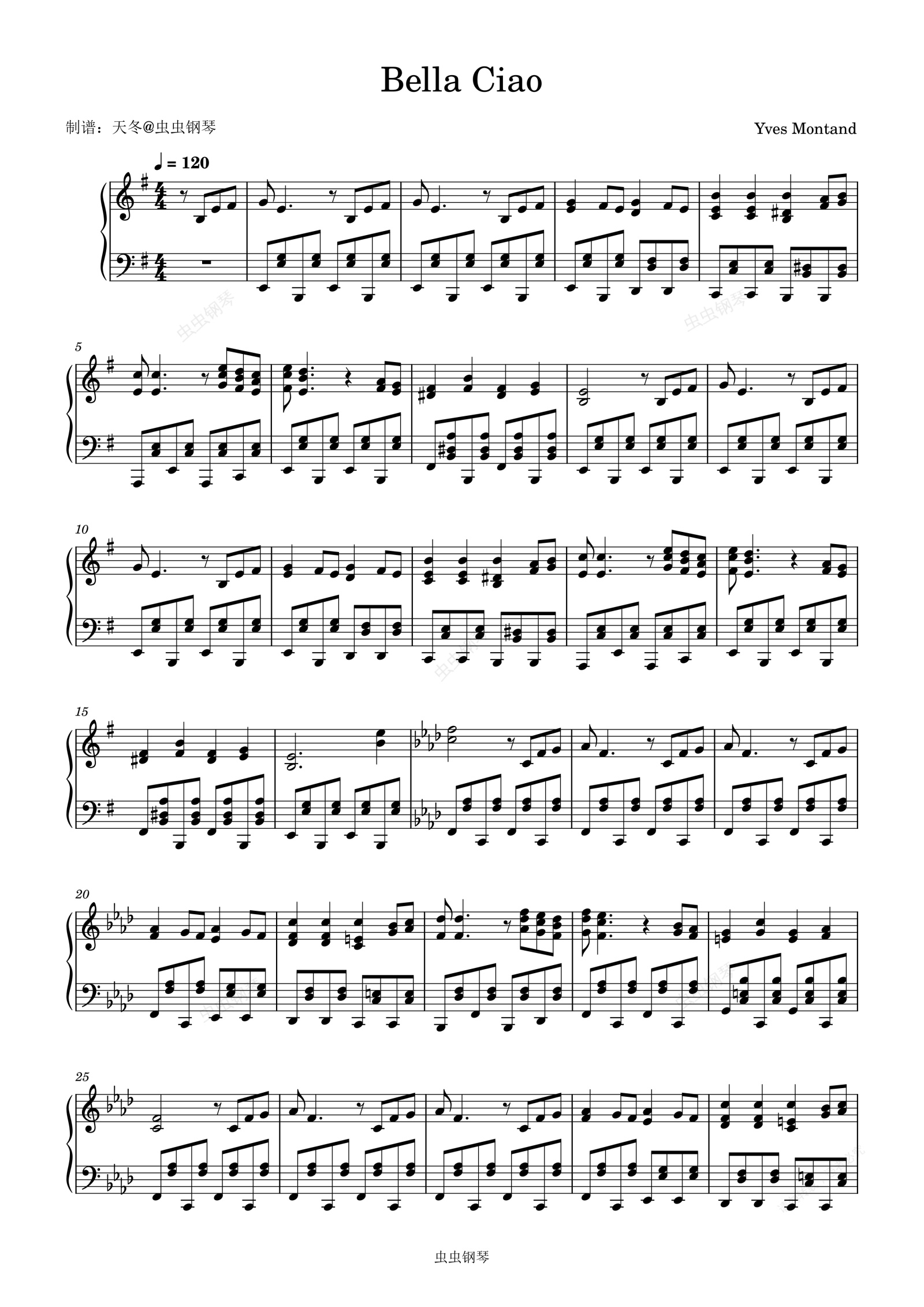 钢琴谱:Bella Ciao啊朋友再见