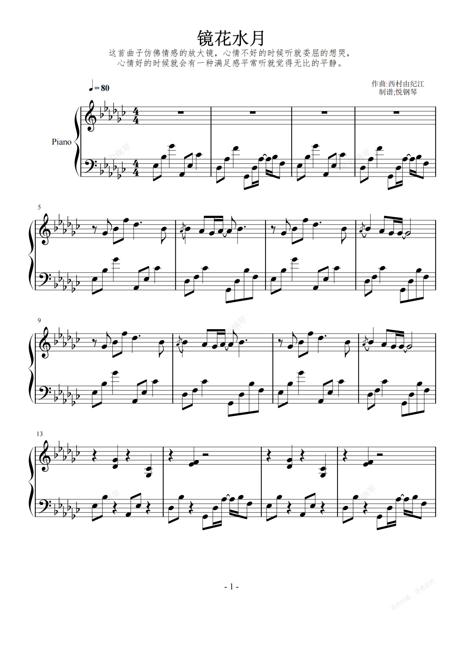 钢琴谱:镜花水月(官方原版)西村由纪江