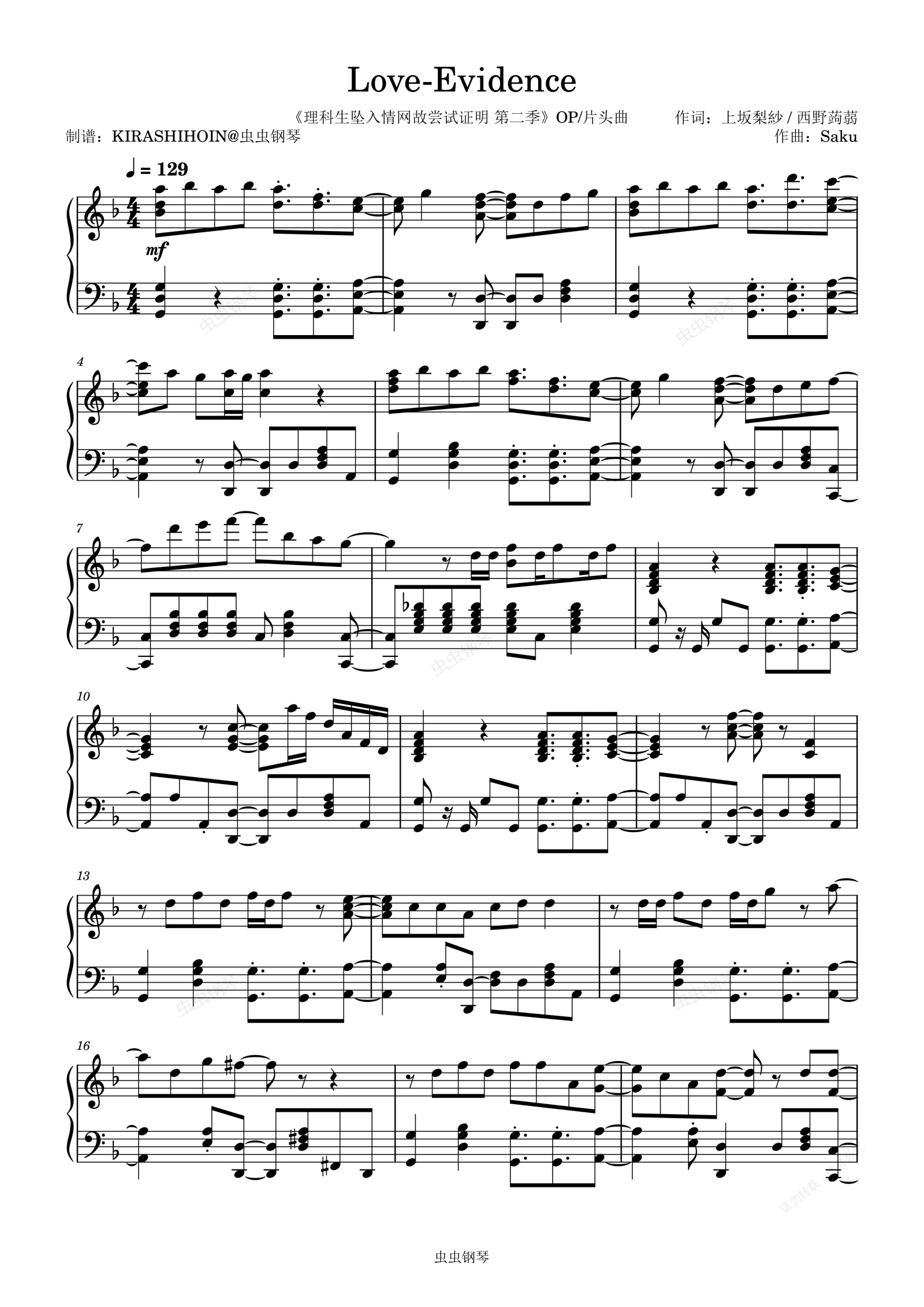 钢琴谱:Love-Evidence(《理科生坠入情网故尝试证明 第二季》OP/片头曲)- 雨宮天