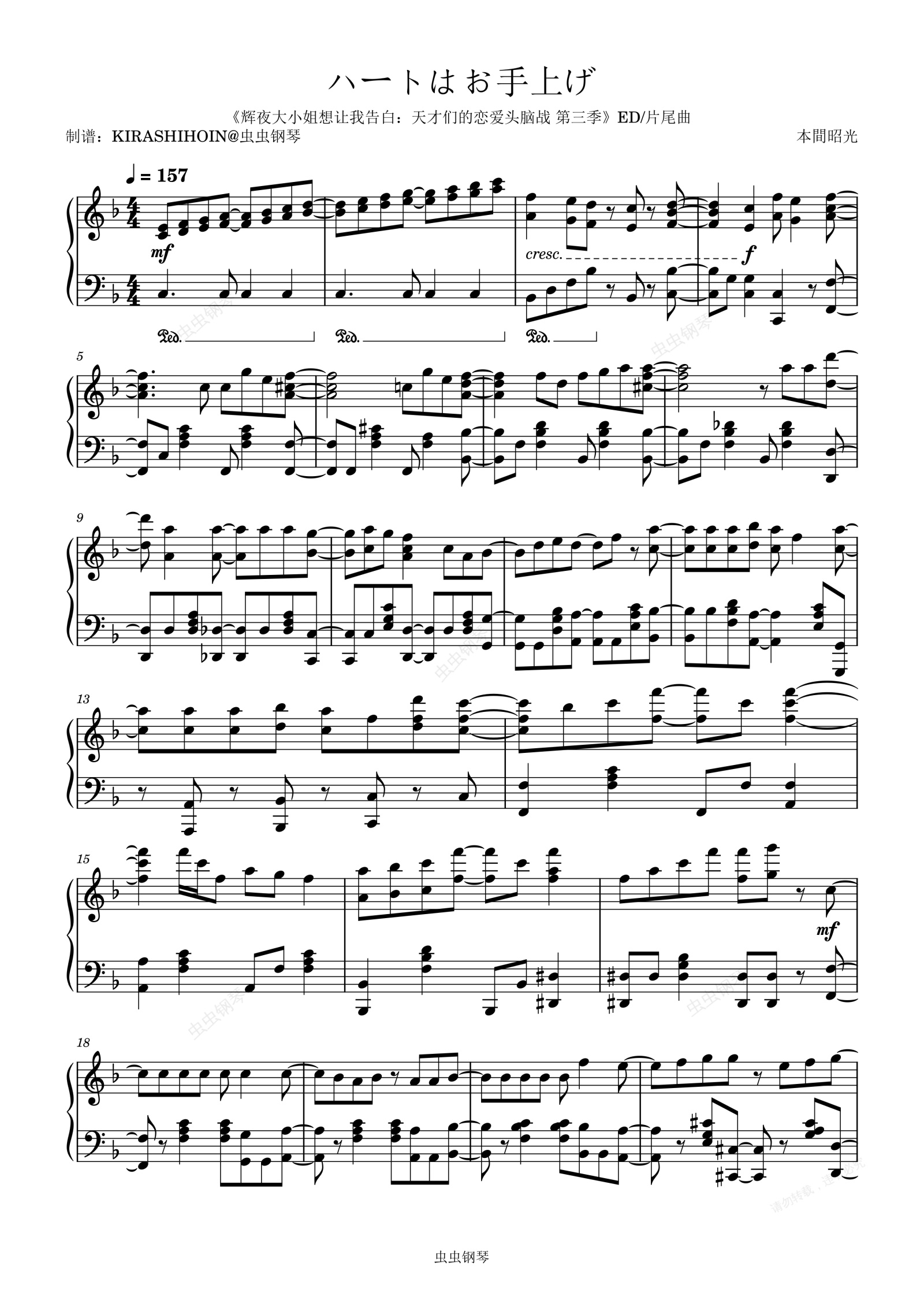 钢琴谱:ハートはお手上げ(《辉夜大小姐想让我告白:天才们的恋爱头脑战 第三季》ED/片尾曲)- 铃木爱理