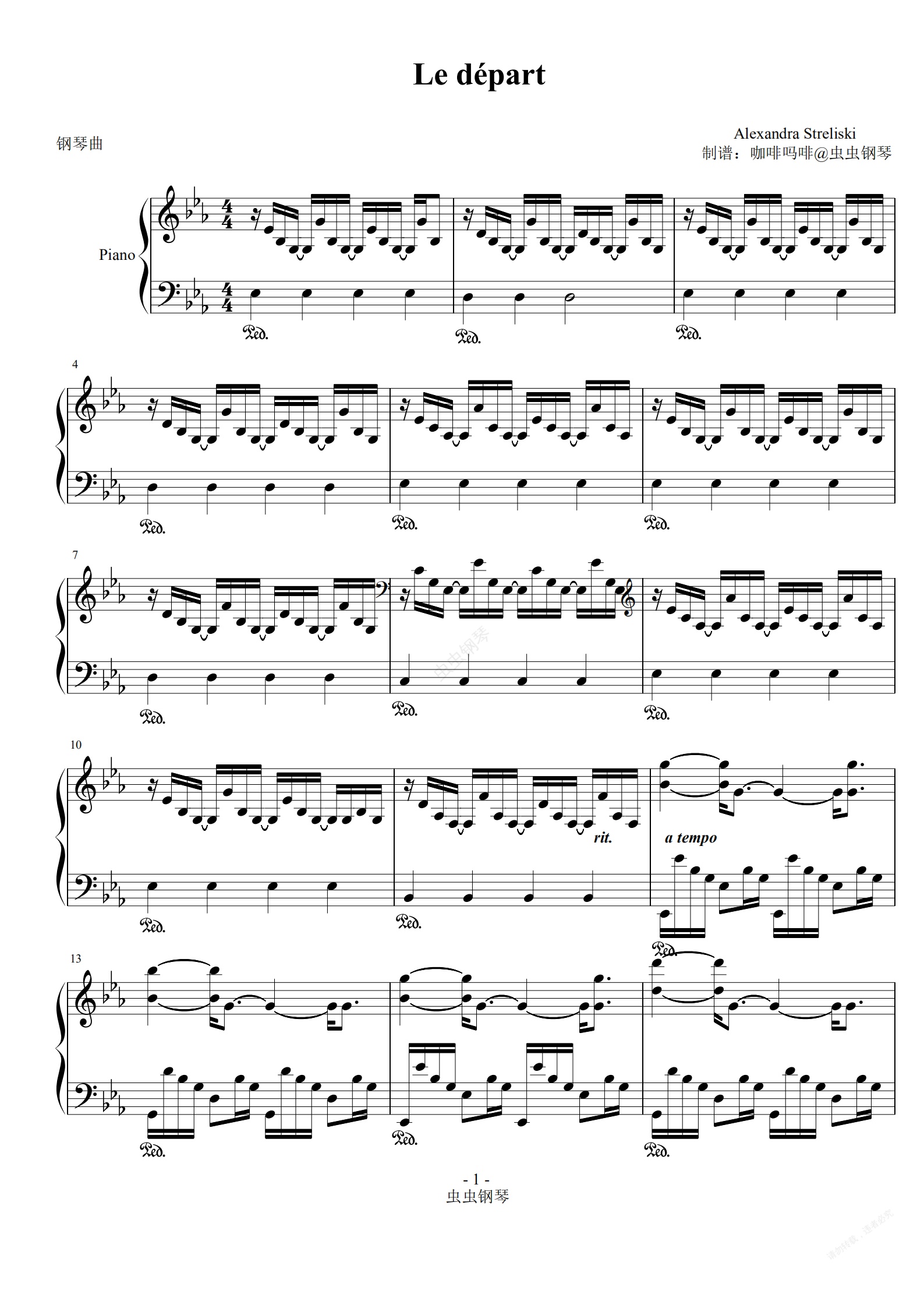 钢琴谱:Le Départ-Alexandra Streliski 钢琴谱