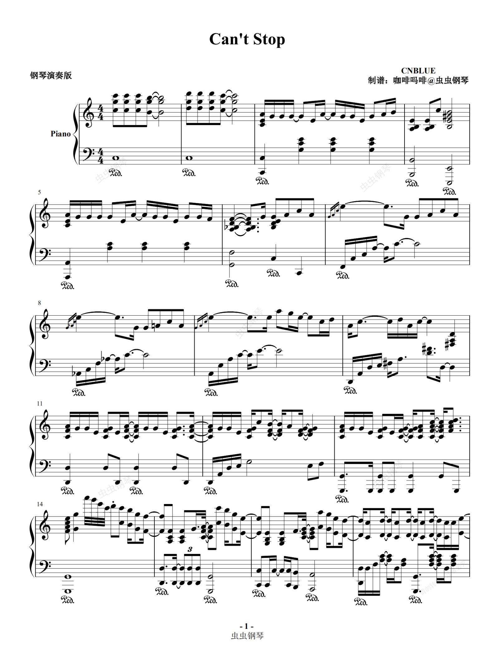 钢琴谱:Can't Stop -CNBLUE钢琴谱