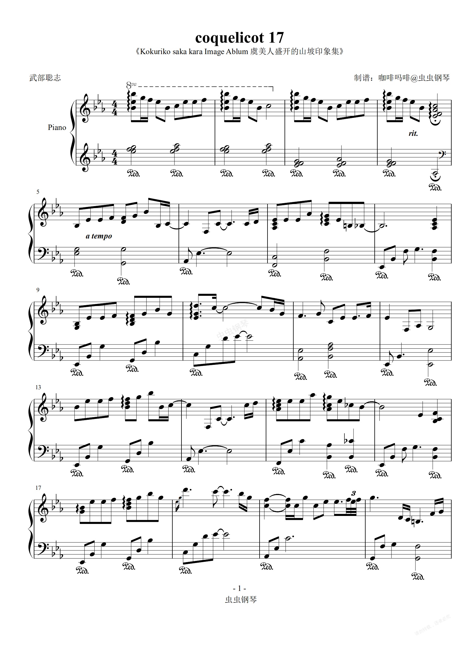 钢琴谱:coquelicot 17-武部聡志 钢琴谱