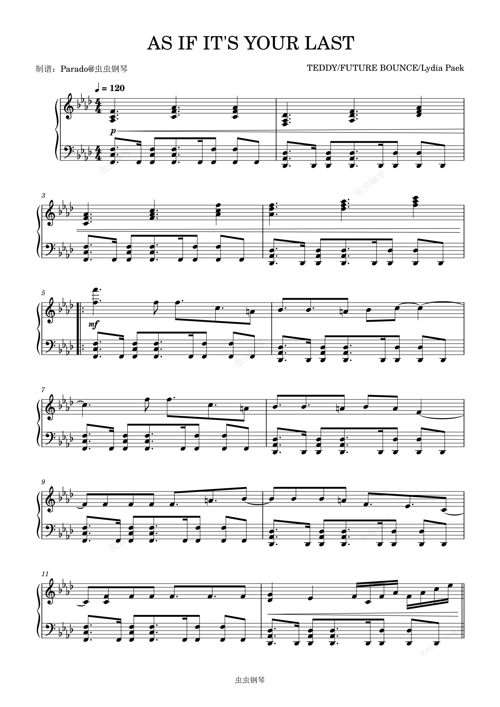 钢琴谱:【极限还原】AS IF IT'S YOUR LAST - BLACKPINK