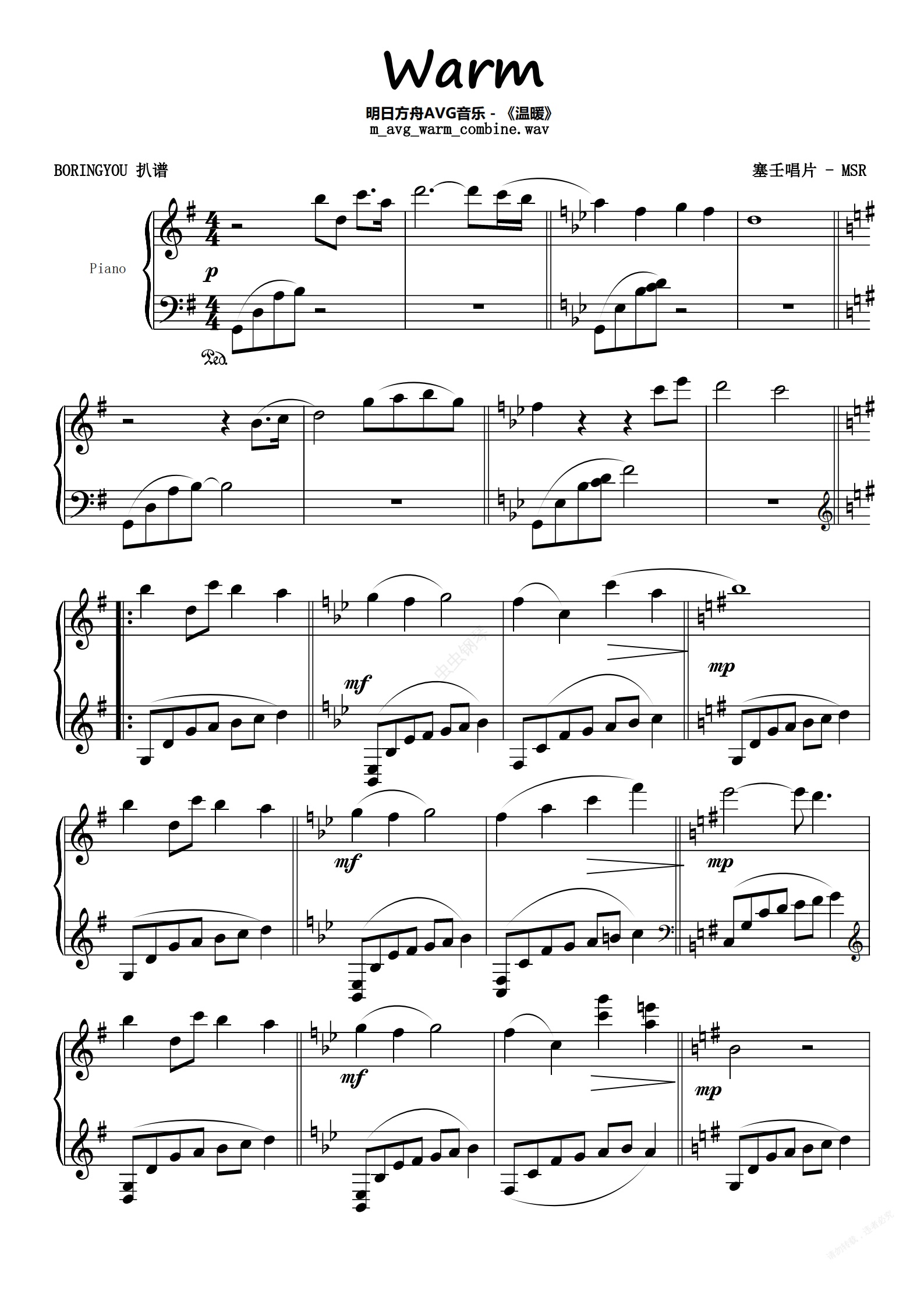 钢琴谱:明日方舟剧情音乐 - 《Warm》