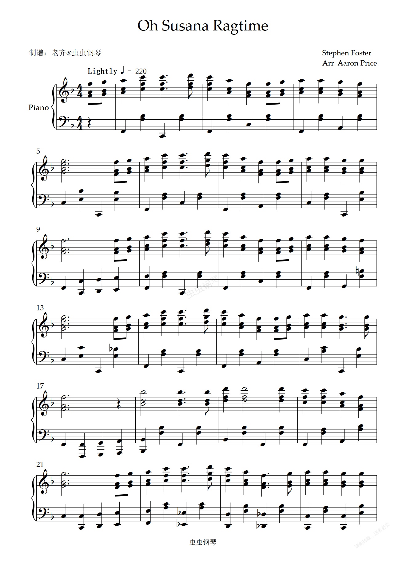 钢琴谱:【爵士】哦,苏珊娜!拉格泰姆