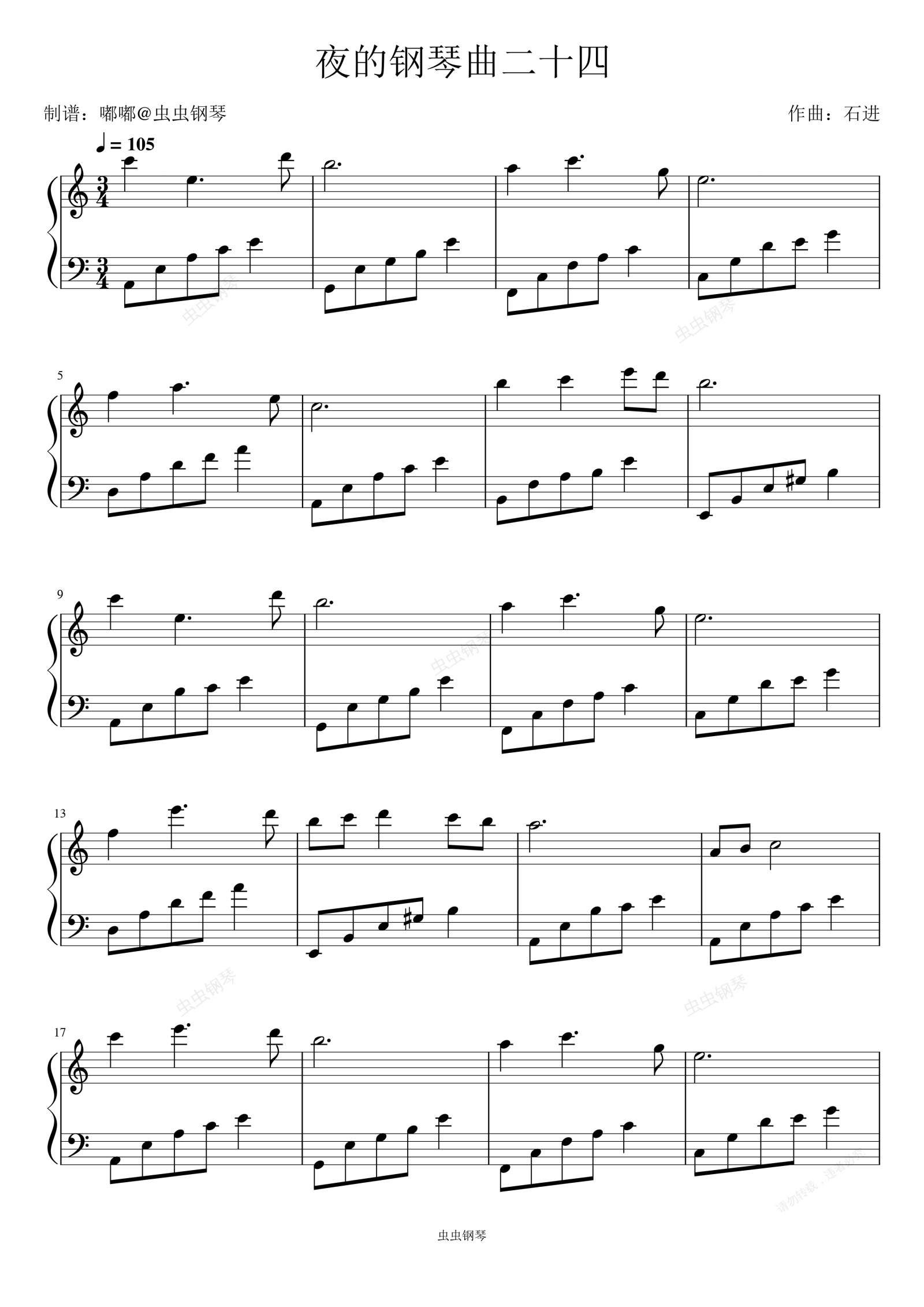 钢琴谱:夜的钢琴曲二十四(C调简化版)