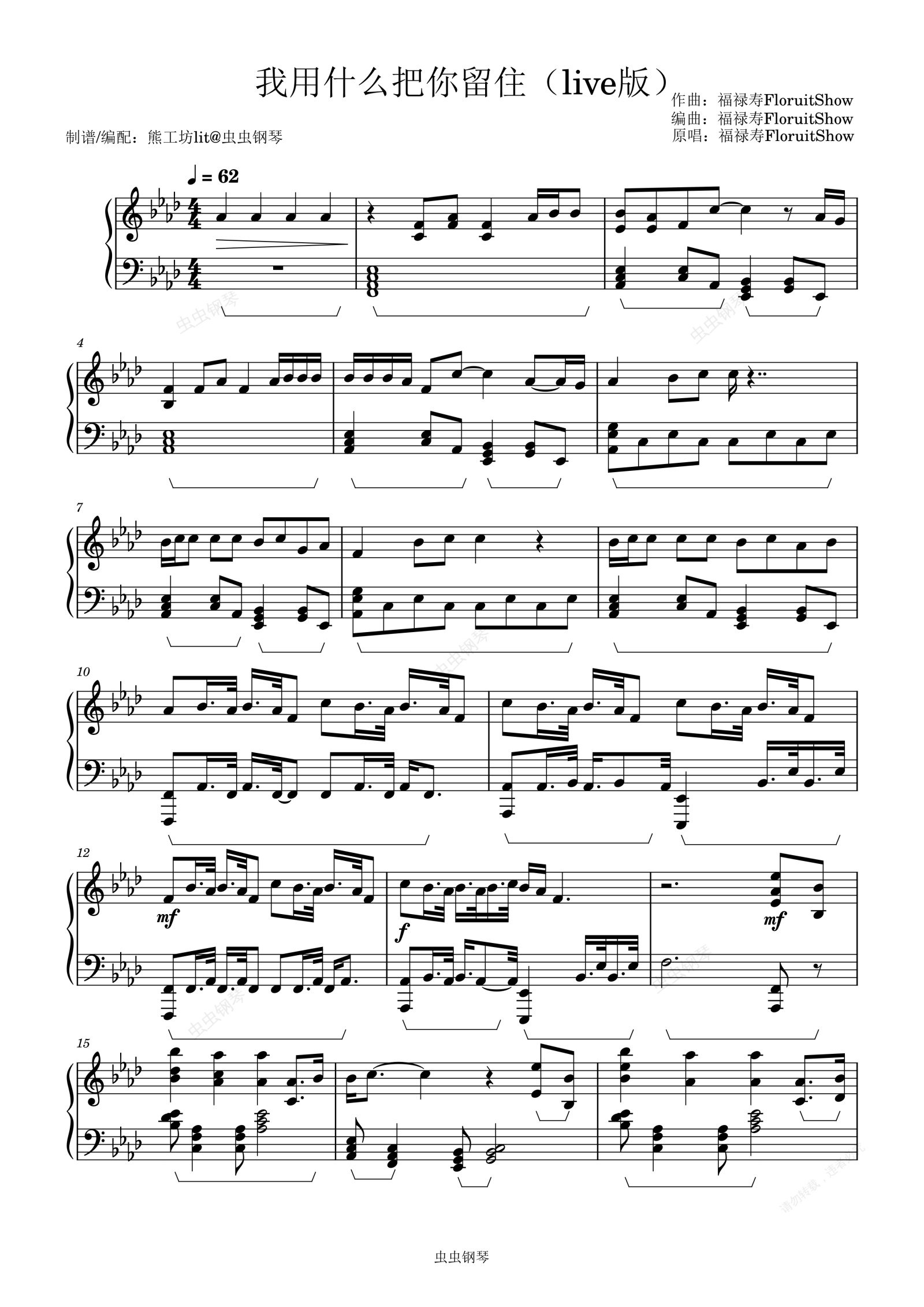 钢琴谱:我用什么把你留住(live版)