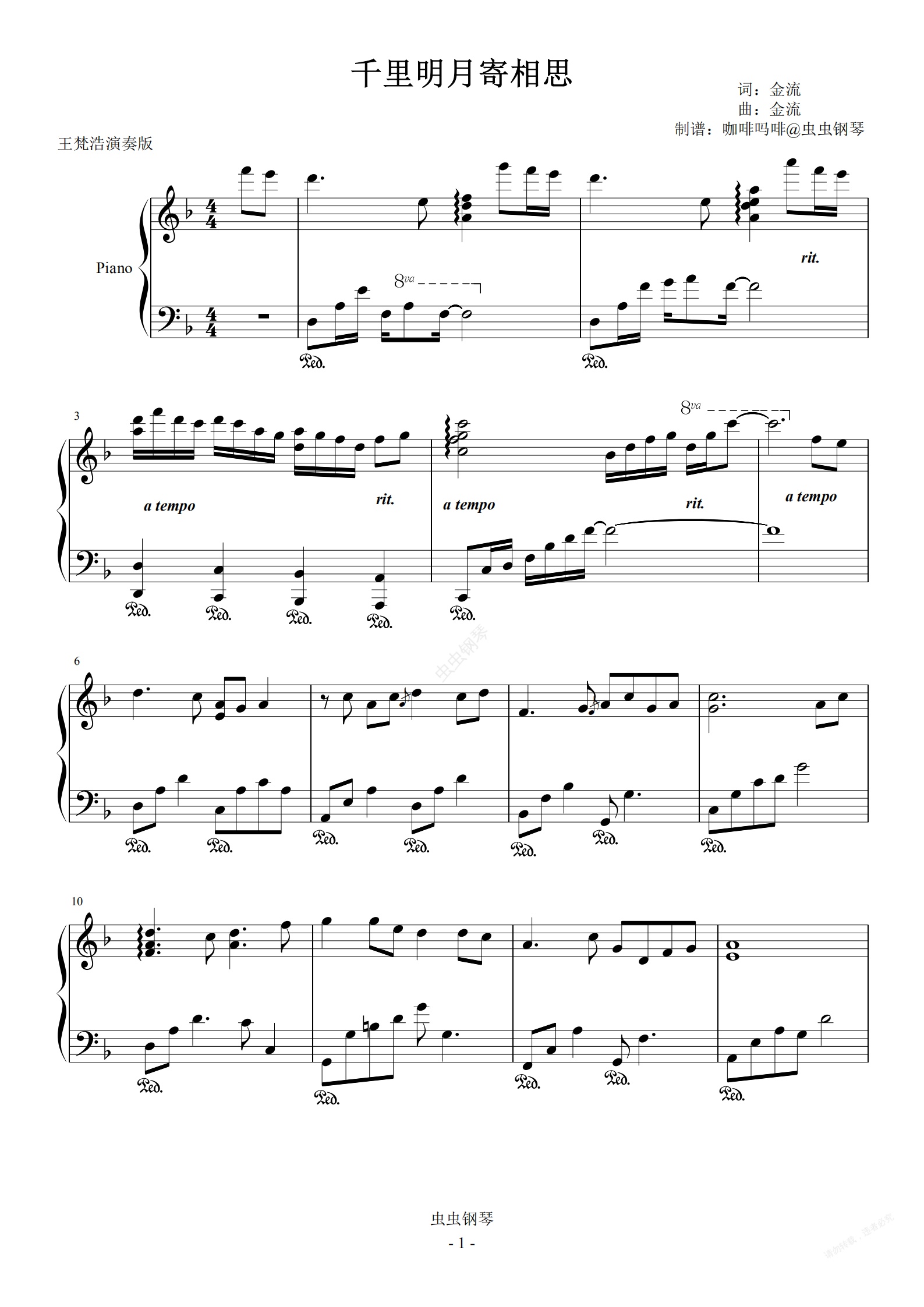 钢琴谱:千里明月寄相思-王梵浩版钢琴谱