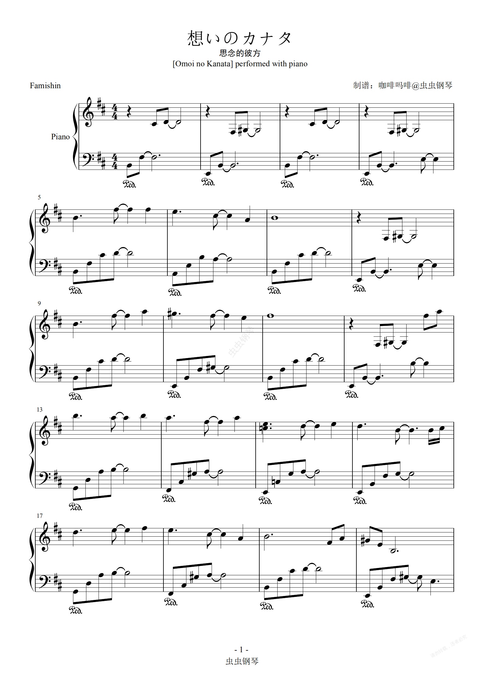钢琴谱:想いのカナタ-Famishin 钢琴谱