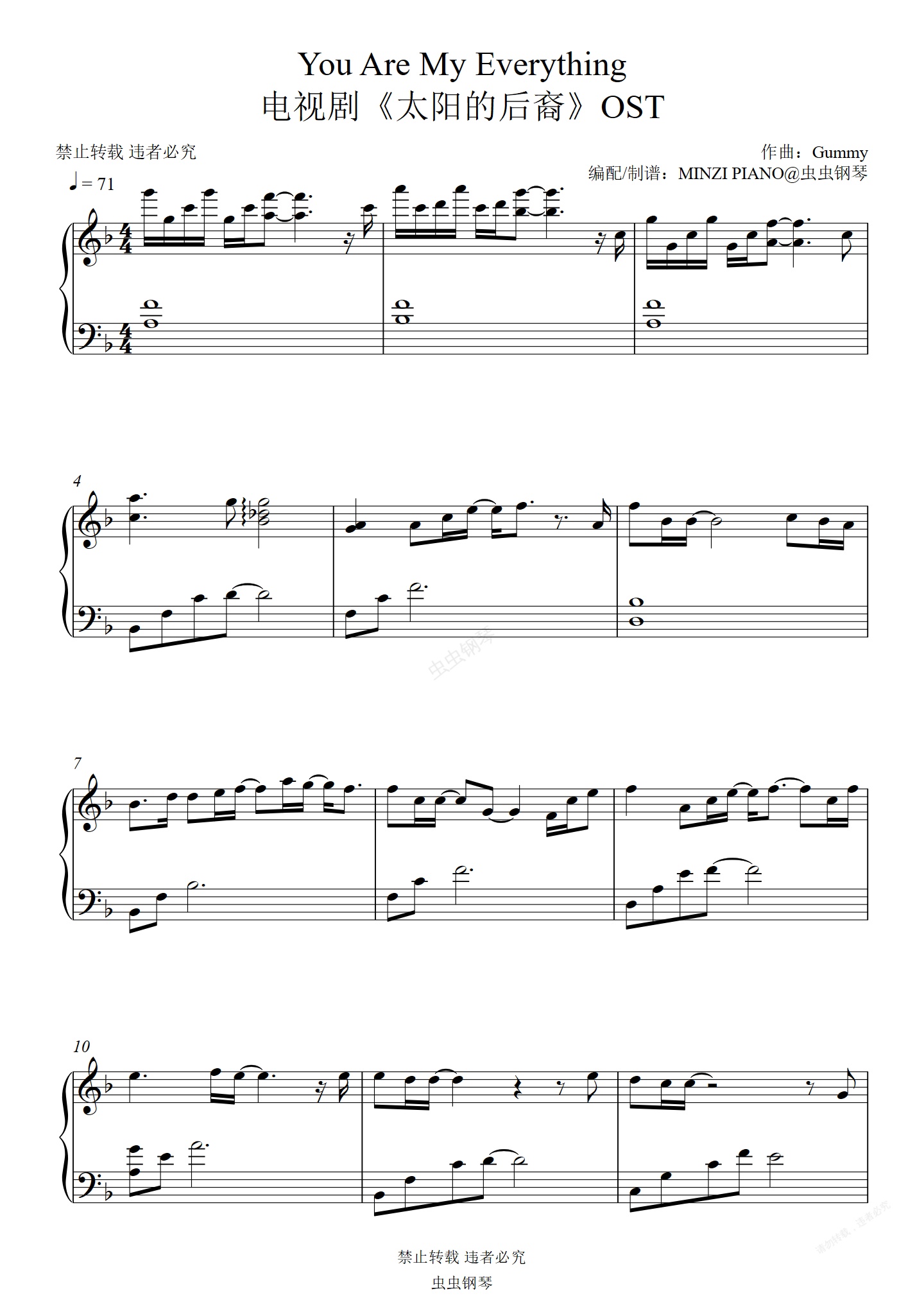 钢琴谱:太阳的后裔OST《You Are My Everything》