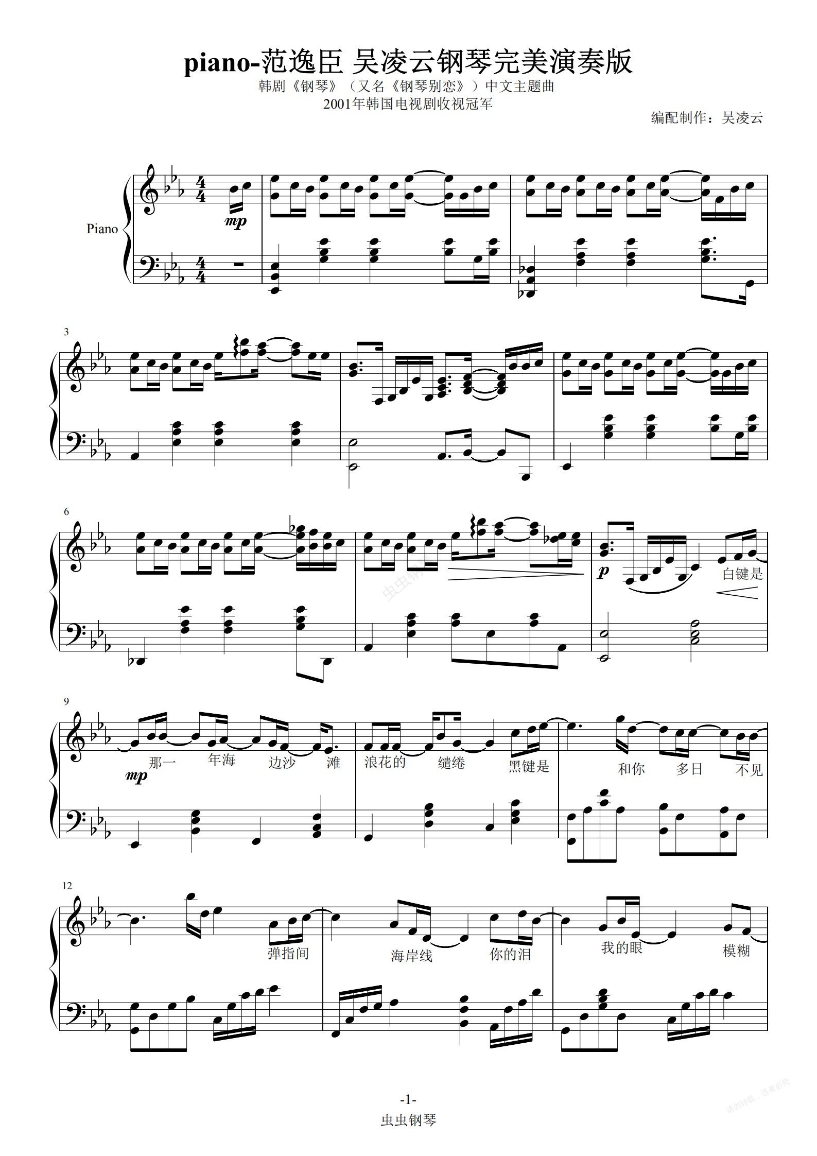 钢琴谱:piano-范逸臣 吴凌云钢琴完美演奏版 韩剧《钢琴》(又名《钢琴别恋》)中文主题曲