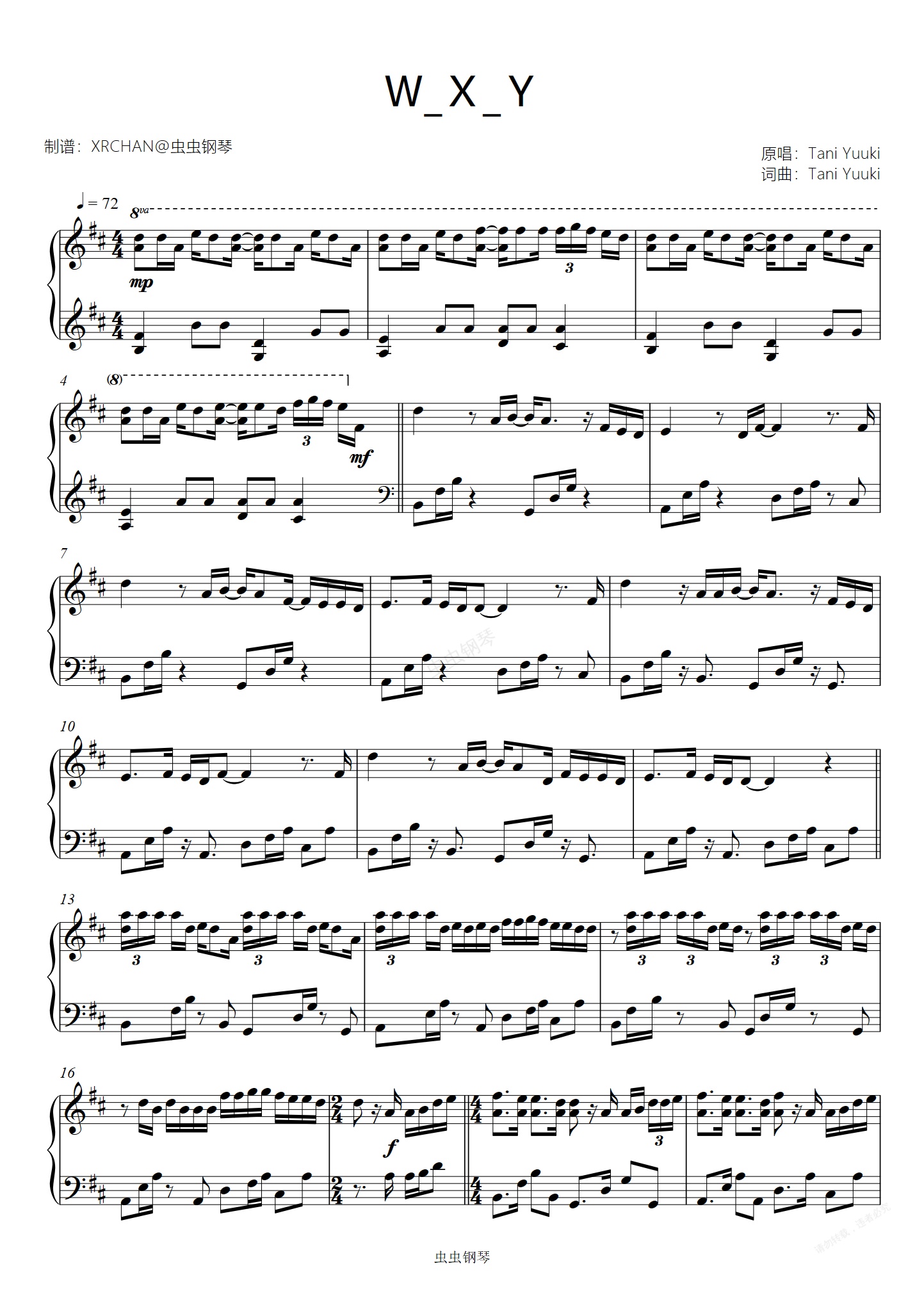 钢琴谱:《W_X_Y》Tani Yuuki 初级版