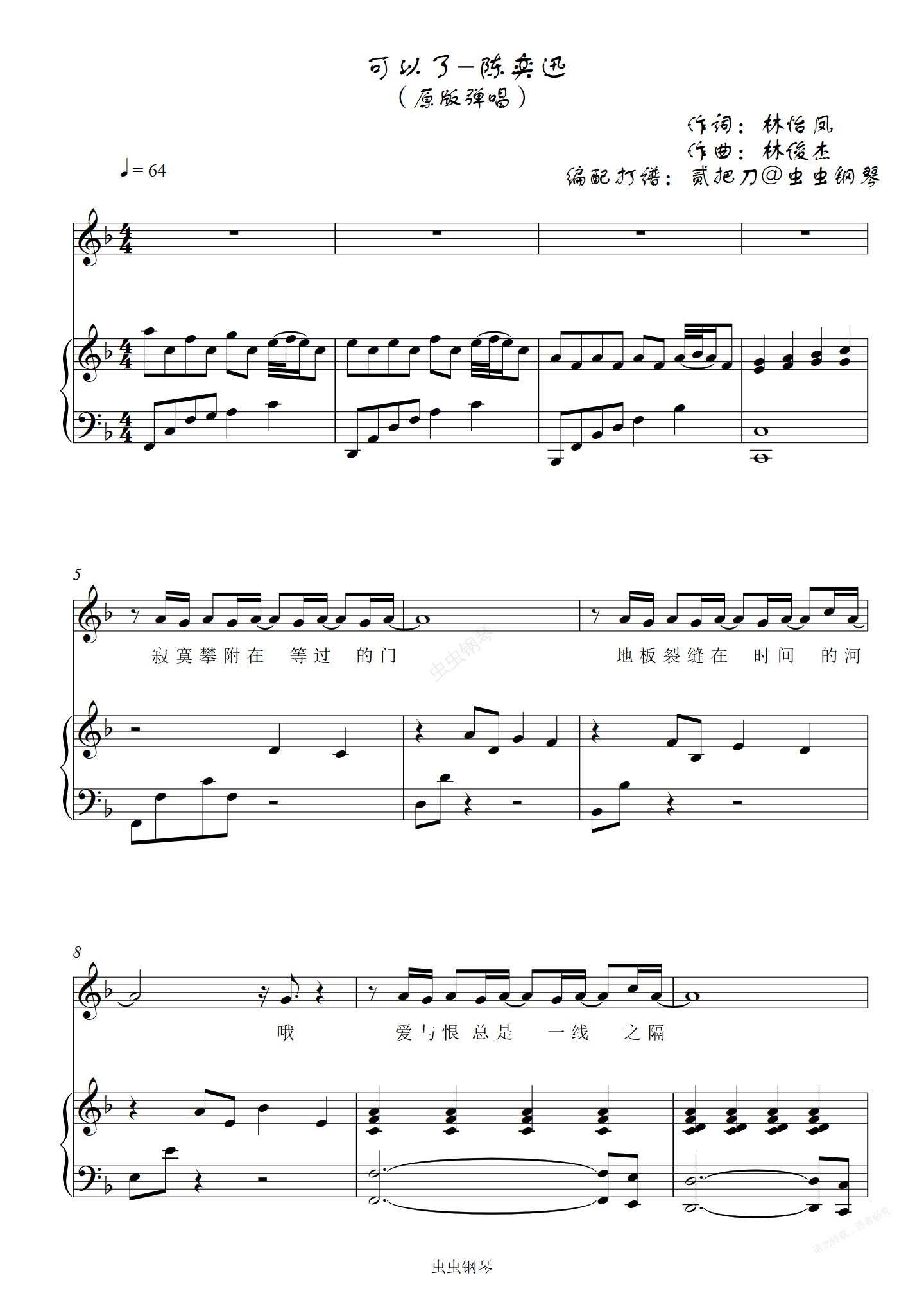 钢琴谱:《可以了》全网首发原版弹唱附词