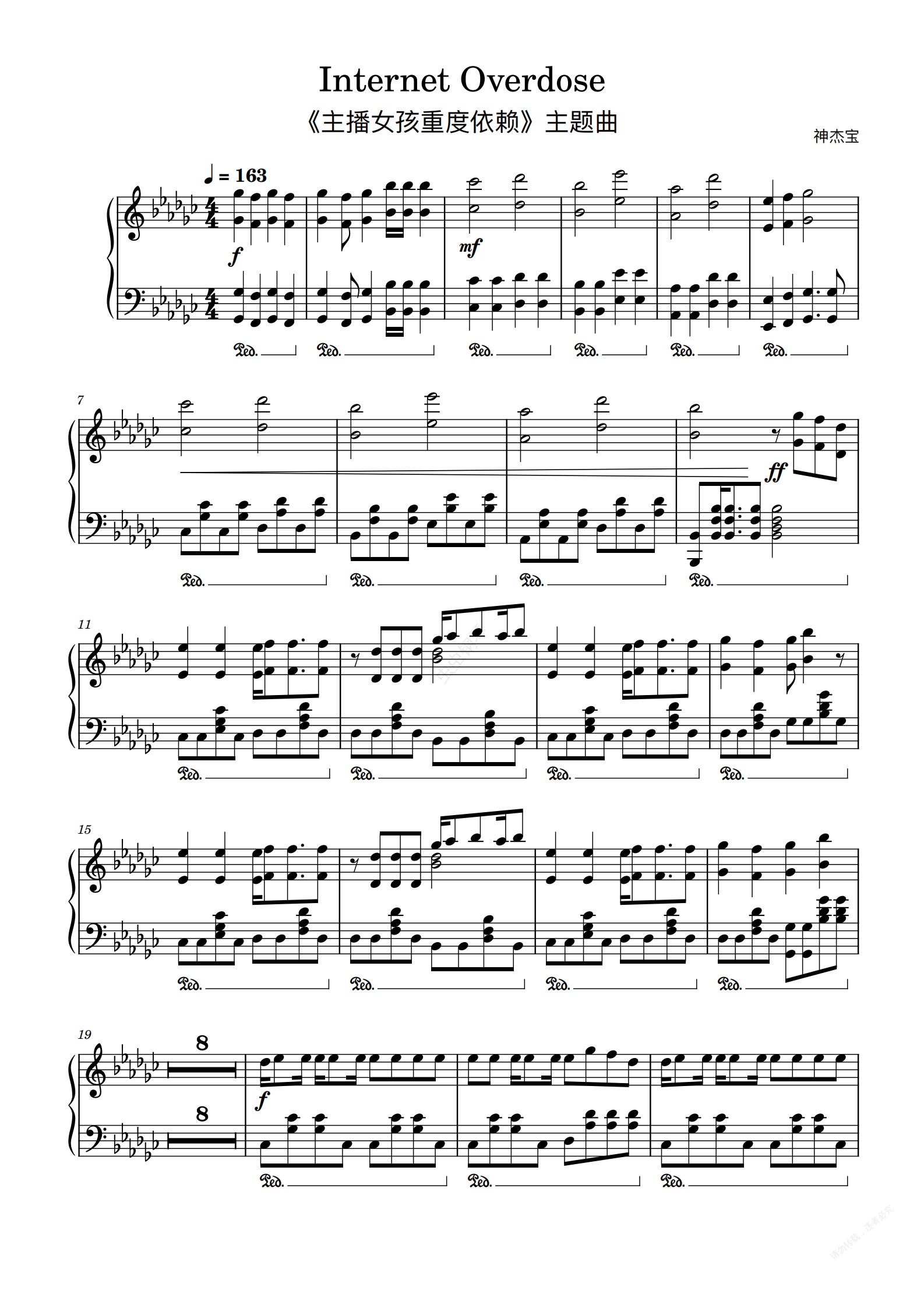 钢琴谱:INTERNET OVERDOSE《主播女孩重度依赖》主题曲