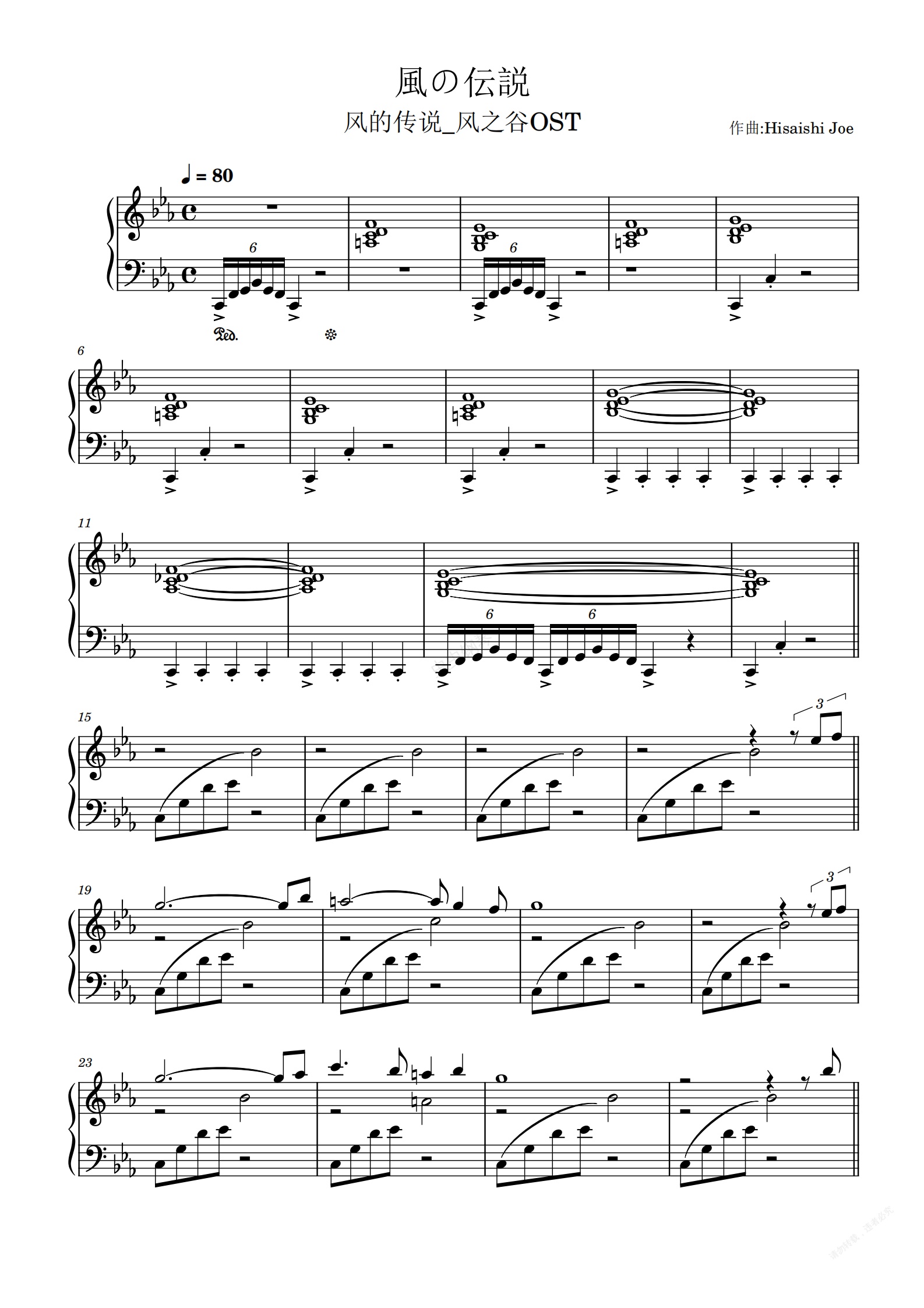 钢琴谱:风的传说/風の伝説 风之谷OST