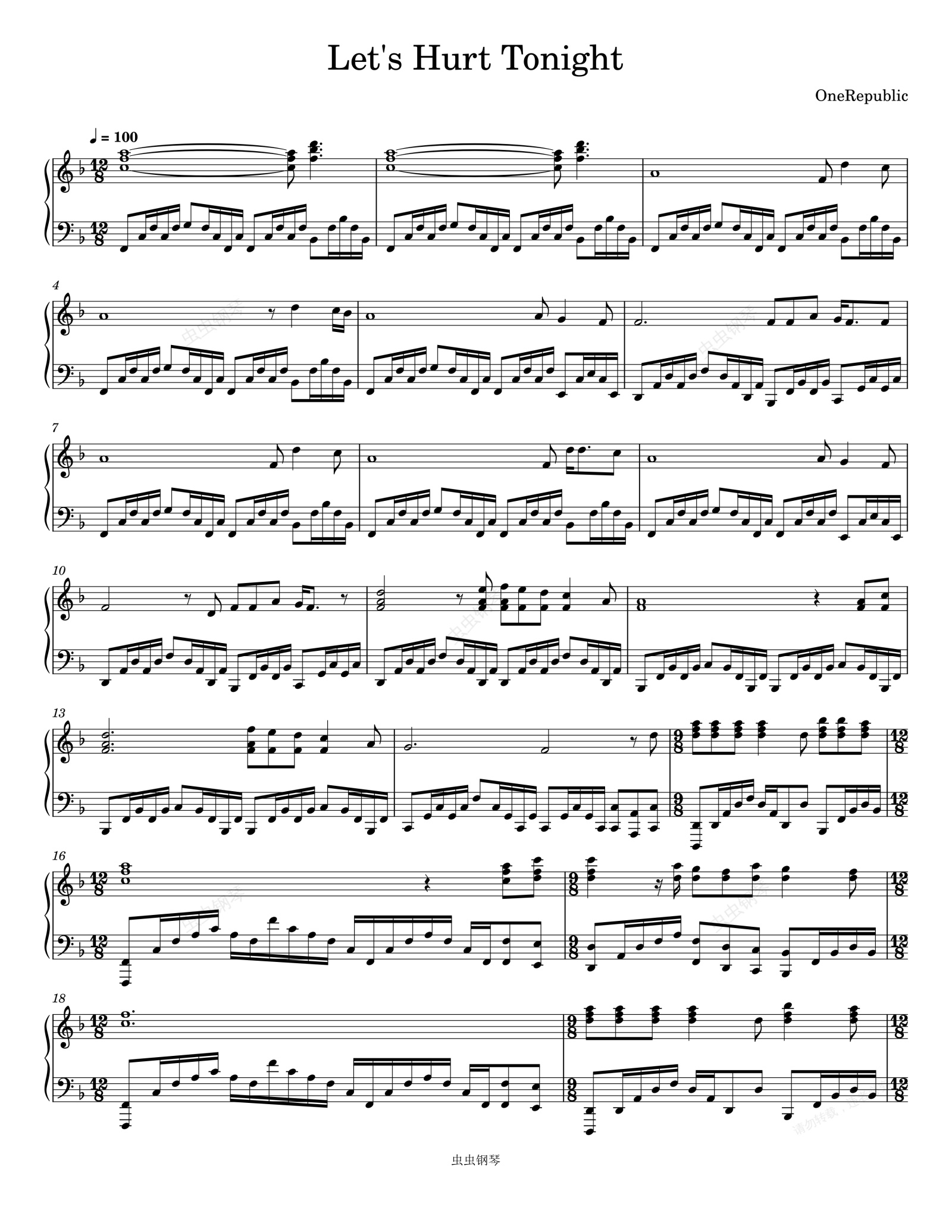 钢琴谱:Let's Hurt Tonight-OneRepublic