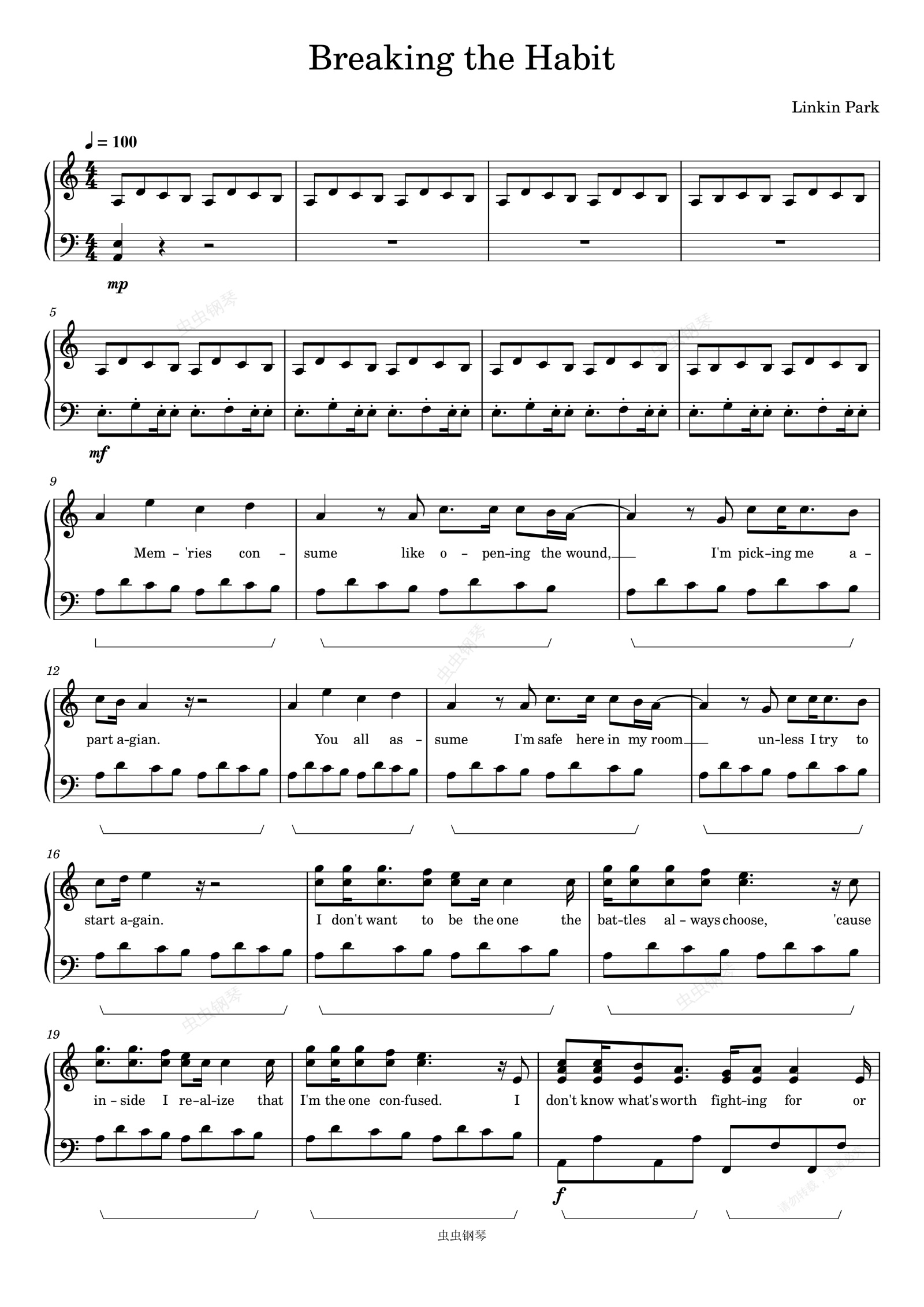 钢琴谱:Breaking the Habit-Linkin Park